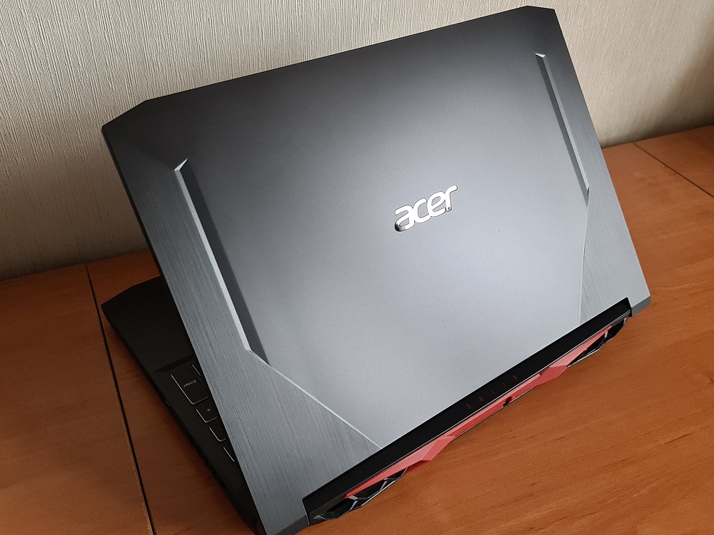 Внешний вид Nitro 5 вполне узнаваем. Корпус устройства целиком выполнен из пластика, но мне он показался довольно качественным. Так, клавиатура прогибается, только если надавить на нее со всей силы. Крышка с экраном — тонкая, но вы же не будете стучать по ней? Область возле кнопок имеет полуматовую поверхность — она легко пачкается, так что не ленитесь ухаживать за своим компьютером. Дизайн устройства вы можете оценить по нашим фотографиям — выглядит ноутбук по-геймерски.