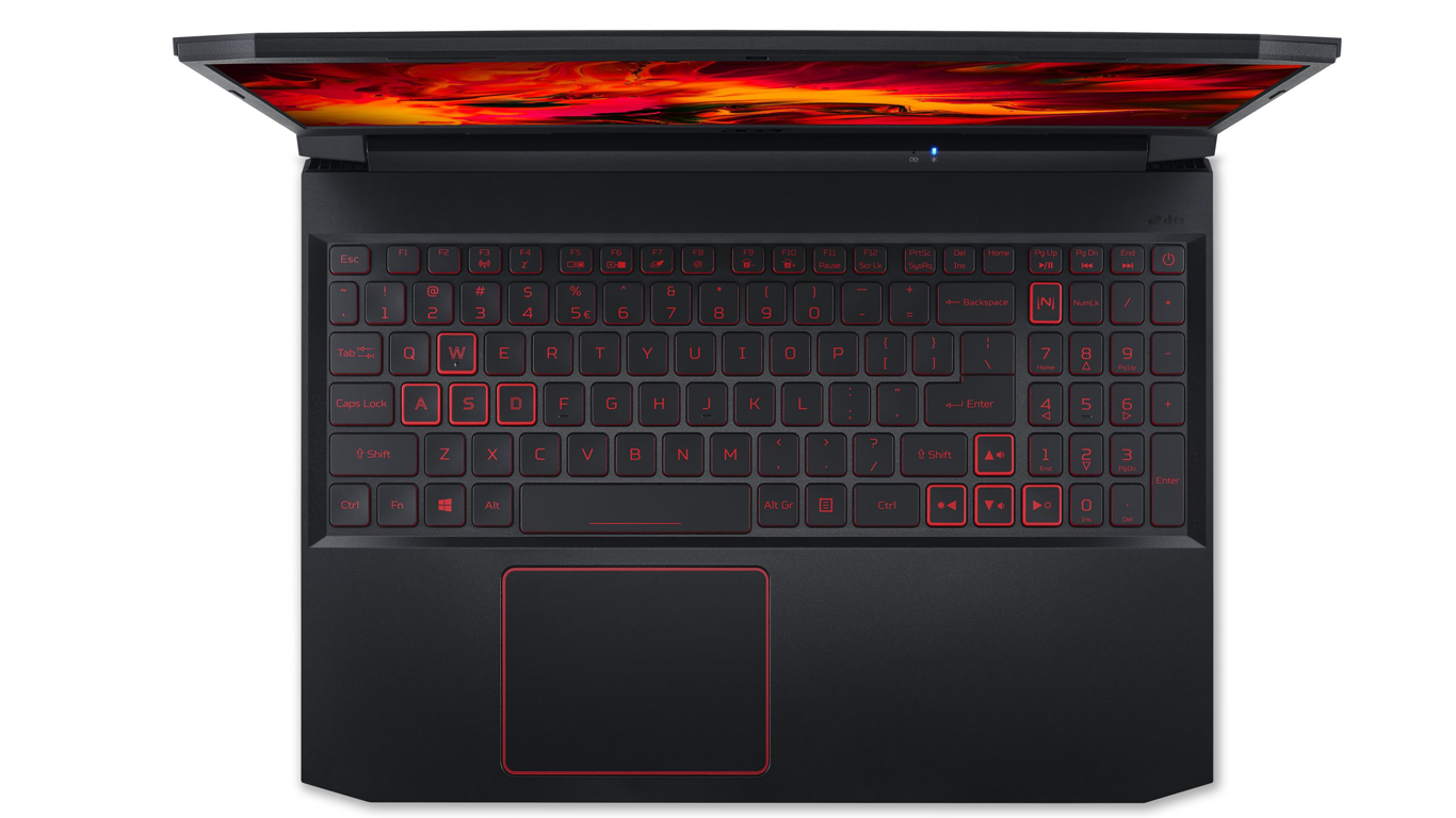 Nitro 5 оснащен клавиатурой с цифровым блоком, но при таком размере корпуса компоновка довольно кучная. Клавиши цифрового блока меньше по размеру, чем остальные, и никак не отделены от основной массы. При слепом использовании это поначалу неудобно, но со временем привыкаешь. Клавиатура оснащена подсветкой красного цвета с одной градацией яркости. Ход короткий и тихий, используется ножничный механизм. О геймерской направленности ноутбука намекает выделенный -блок, который хорошо отыскивается боковым зрением. Среднеразмерный тачпад смещен влево относительно центра корпуса. Палец отлично скользит по стеклянной поверхности, а с обработкой касаний не возникает никаких проблем. Это хороший вариант для повседневной работы, а для игр всегда можно подключить мышку.