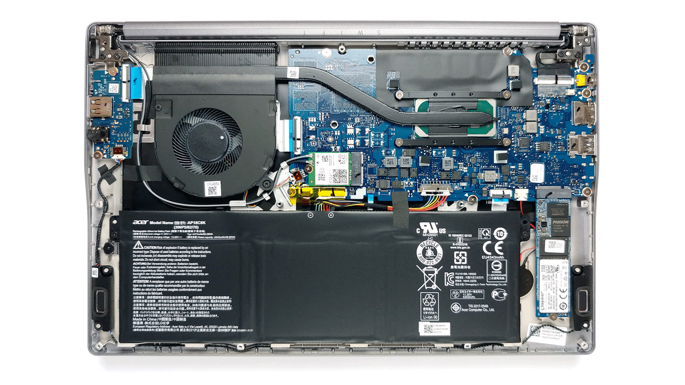 SSD-накопитель не является одной из самых сильных сторон – хотя мы говорим о стандарте M.2 PCIe NVMe, Swift X получил накопитель WD SN530 на 512 ГБ, скорости которого посредственные.