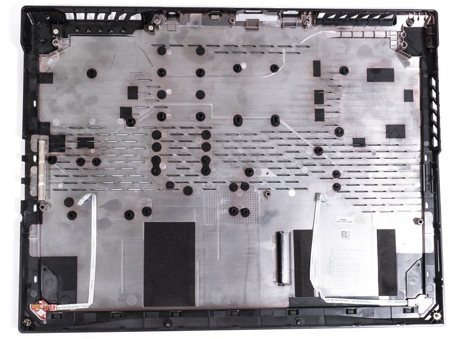 Нижняя крышка не несет на себе нечего, кроме модулей подсветки, к которым подходят два отдельных шлейфа.