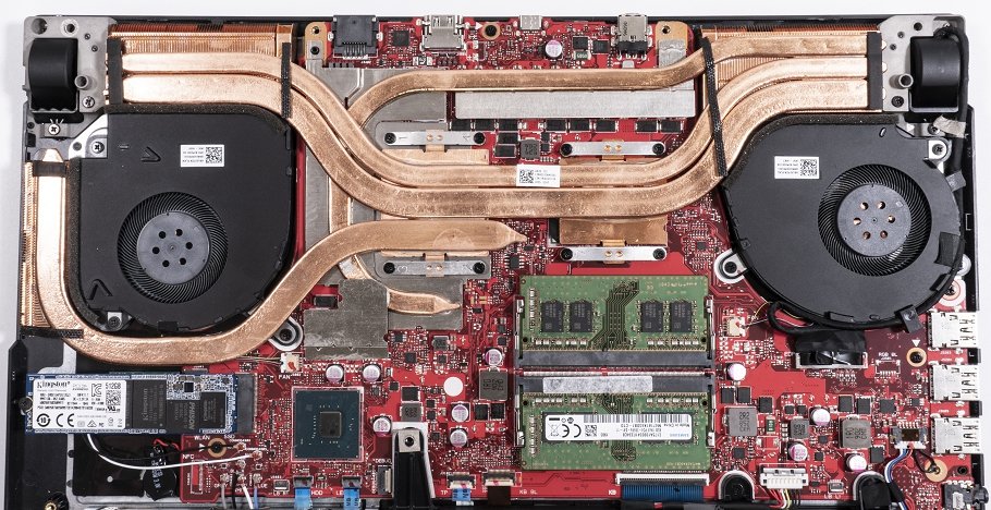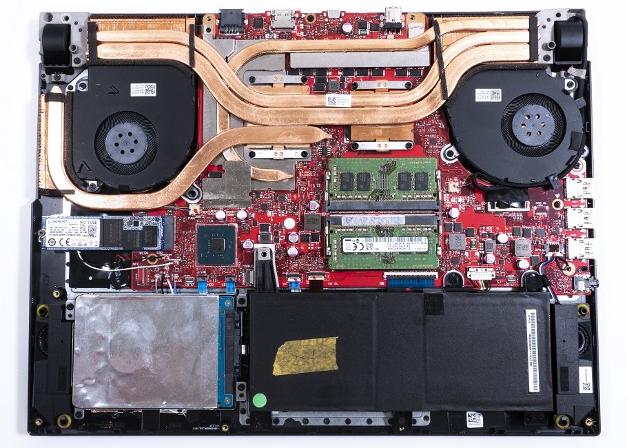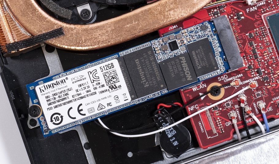 Для установки накопителя предусмотрен слот M.2 и в него установлен в данной модификации NVMe SSD Kingston на контроллере Phison, можно сказать, что это OEM-версия SSD Kingston A1000. Еще замечу, что ASUS ROG Strix G GL531 может быть оснащен HDD, который есть в нашей модификации и подключается к материнской плате при помощи шлейфа. Установлен ли шлейф для установки 2.5″ устройств в модификациях без HDD, к сожалению, остается загадкой.
