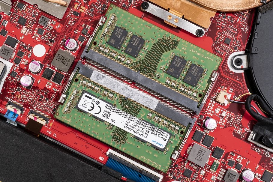 Для установки оперативной памяти доступно два слота SO-DIMM, в которые штатно могут быть установлены до 32 Гб ОЗУ, а в нашем случае 16 Гб двумя модулями качественной памяти производства Samsung.