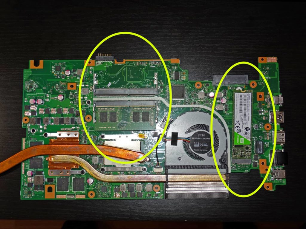 На данном этапе вы сможете только заменить жесткий диск на SSD работающим через SATA3. Если вы решили добавить оперативной памяти или установить SSD накопитель в разъем m.2, то придется выкрутить еще с десяток винтов. Потому что необходимые нам слоты находятся с другой стороны материнской платы!