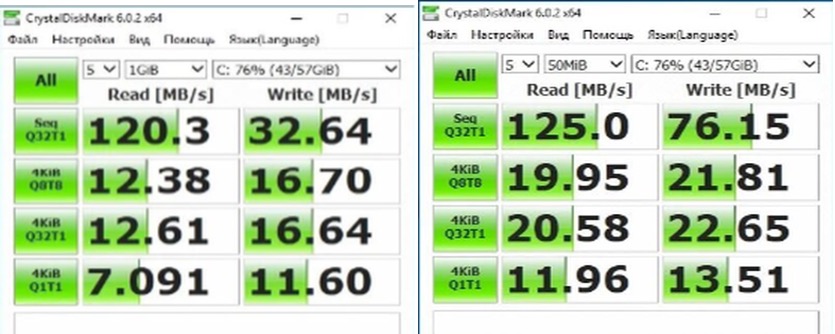 А здесь показатели в несколько раз ниже и не так уж значительно превышают скорости типичных HDD дисков.