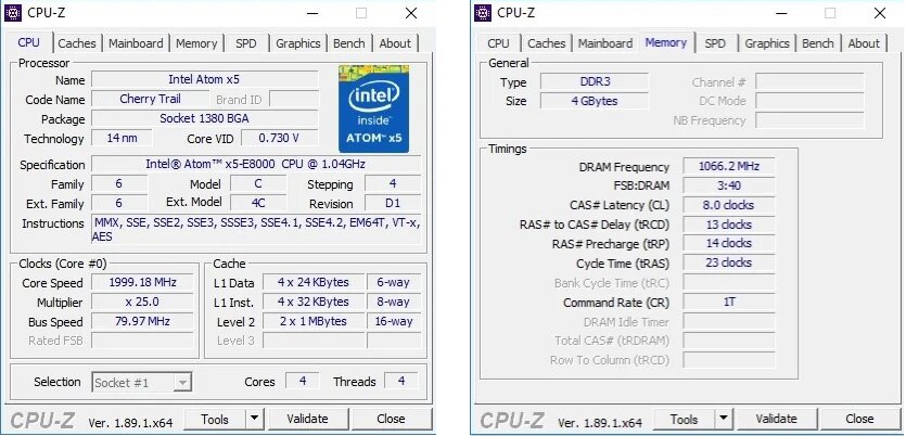 Многопоточности тут нет, информация обрабатывается в четыре потока по количеству ядер. В качестве графики идет Intel HD Graphics (Cherry Trail).