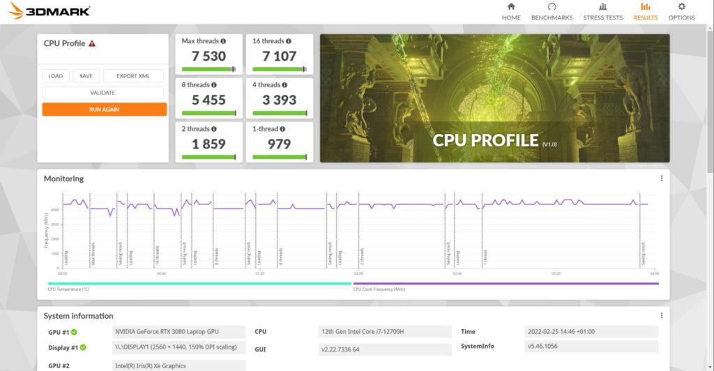 | MSI Raider GE66 Intel Core i7-12700H + GeForce RTX 3080 8 ГБTGP 150 Вт | 7344 |