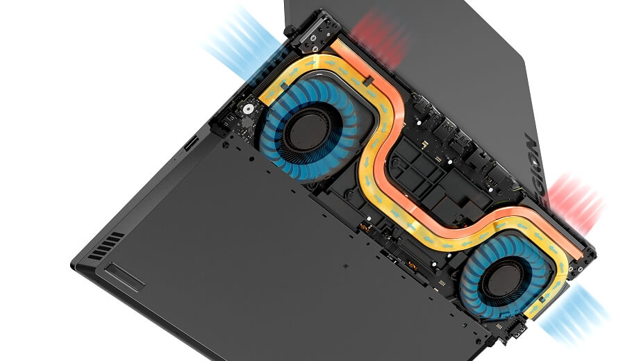 Legion Y730 и Y530 получили компактные корпуса из анодированного алюминия с малой толщиной. Специально для новинок была разработана двухконтурная система охлаждения с массивными теплотрубками, дополнительными боковыми воздухозаборами и специальной конструкцией лопастей кулеров, количество которых по сравнению с прошлым поколением было увеличено на 40%. Она обеспечивает на 16% более мощный воздушный поток и удерживает температуру процессора в среднем на 10°С ниже, чем система предыдущего поколения. В результате эффективность отвода тепла заметно возросла, при этом шум, издаваемый вентиляторами во время работы, уменьшился.