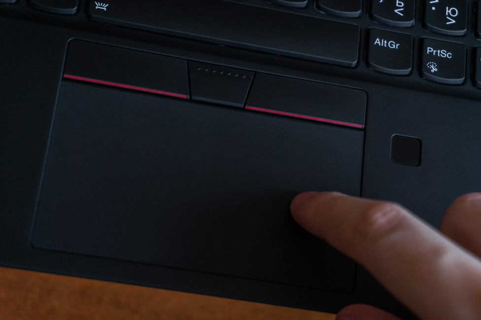 В Lenovo ThinkPad X1 Carbon установлен и новый тачпад, выполненный из монолитной стеклянной панели размером 100х70 мм. В нем, в отличие от предыдущей модели ноутбука, не используются отдельные клавиши, а также улучшена чувствительность и точность перемещения курсора. «Клики» на тачпаде фиксируются как прикосновением к панели, так и сильным нажатием на нее, аналогичном кнопкам управления на обычной компьютерной мышке. По центру клавиатуры также расположен традиционный красный трекпад, унаследованный Lenovo от моделей IBM. Наконец, справа от клавиатуры размещен сканер отпечатка пальца, который можно использовать для дополнительной аутентификации пользователя при входе в систему. Настройка сканера происходит в предустановленном приложении Fingerprint Manager Pro.