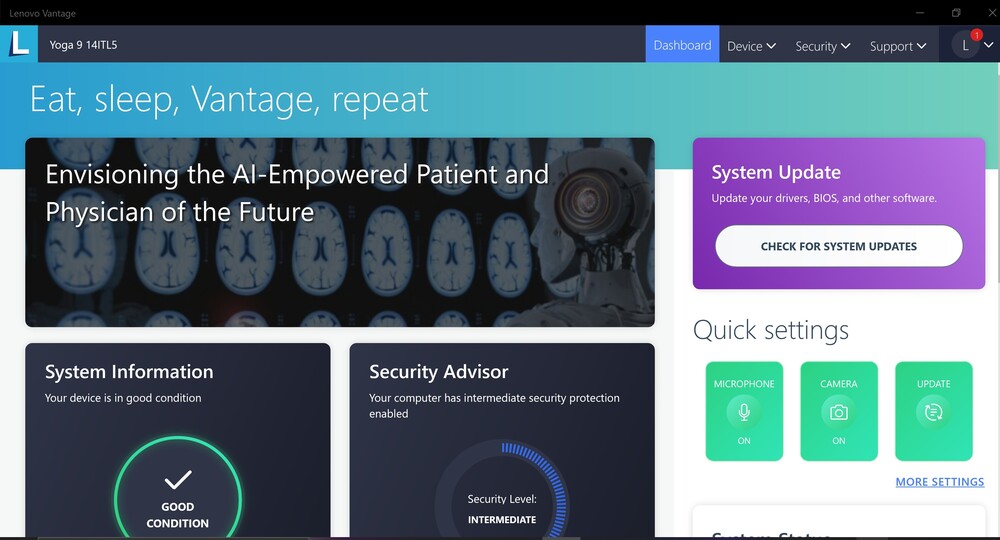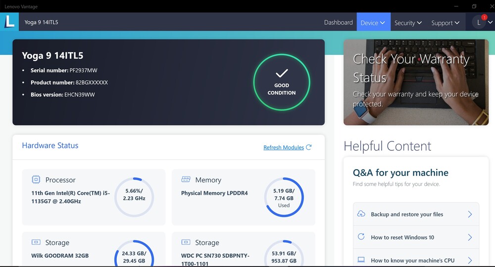 Все это работает под управлением Windows 10 с некоторым полезным собственным ПО, среди которых стоит упомянуть Lenovo Vantage.