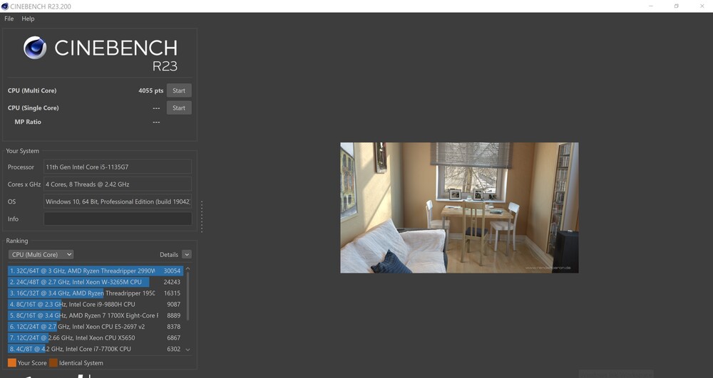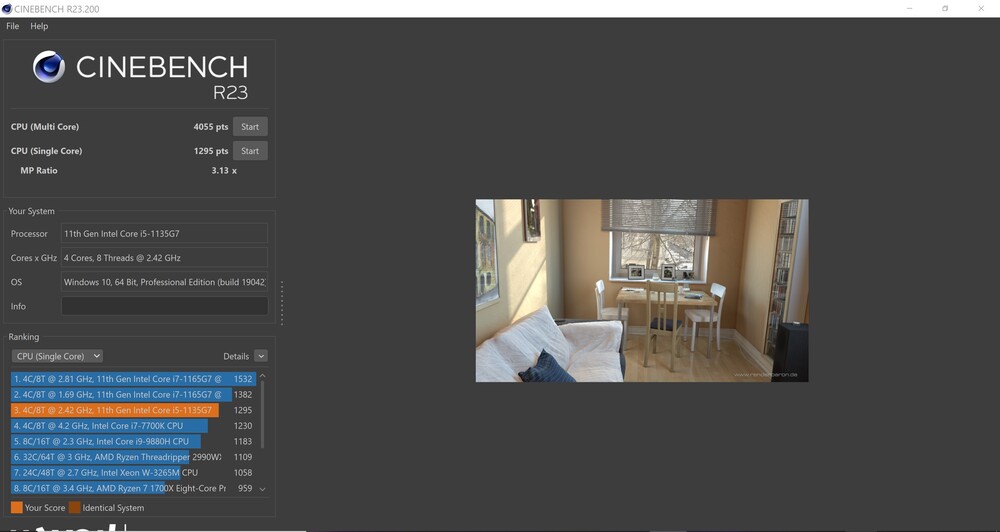 В Cinebench R23 Huawei MateBook 14 показал следующие результаты: