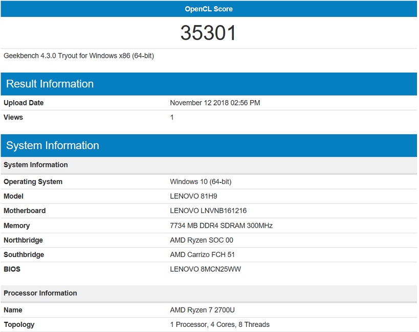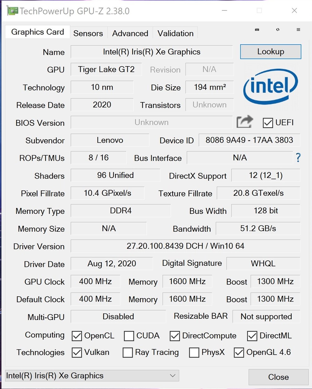 Этот конкретный процессор предлагает 4 ядра и 8 вычислительных потоков по технологии HT. Основная рабочая частота процессора составляет 2,4 ГГц, ее можно автоматически увеличить до 4,2 ГГц благодаря TurboBoost. Среднее потребление TDP 15 Вт может быть уменьшено производителем ноутбука до 12 Вт и базовой тактовой частоты 1 ГГц, или, наоборот, увеличен до 25 Вт и базовой тактовой частоты 1,5 ГГц. Lenovo выбрала стандартное значение 15 Вт TDP и базовую выше 1,5 ГГц, по крайней мере, об этом сообщает ноутбук.