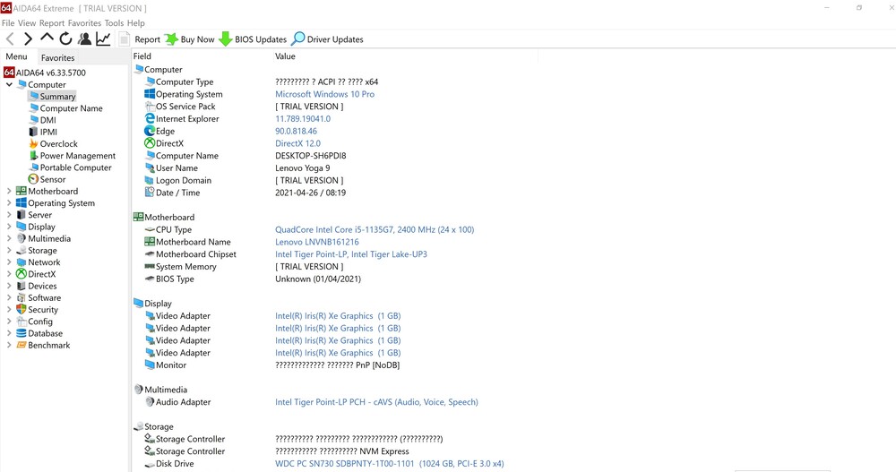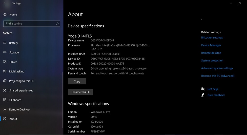Yoga 9i 14 получил процессоры 11-го поколения Intel «Tiger Lake» и сертификацию платформы Intel Evo. Эта комбинация обеспечивает заметно быструю работу даже во время зарядки аккумулятора. Это дает возможность мгновенно вернуться к работе при необходимости. И, пожалуй, самое главное, как для такого тонкого и легкого ноутбука он обеспечивает отличное время автономной работы. Интересно, что доступны модели с процессорами Core i5-1135G7 или Core i7-1185G7. В моем случае это была «младшая» версия. Хотя этого четырехъядерного процессора достаточно для комфортной работы.
