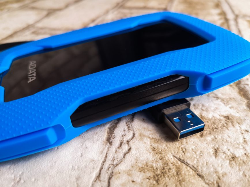 В зависимости от объема накопителя резиновая часть может быть со вставками из синего цвета, желтого либо же сплошного черного. Отмечу, на рынке DashDrive Durable HD710 (1ТБ) присутствует в трех модификациях со встроенной памятью – 500 ГБ, 750 ГБ, а также 1 ТБ.