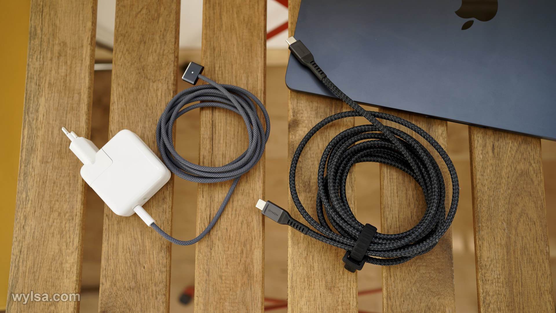 Не могу не похвалить Apple за внимание к деталям: комплектный кабель MagSafe с тканевой оплёткой, очень красивый. Причём оплётка соответствует цвету корпуса ноутбука