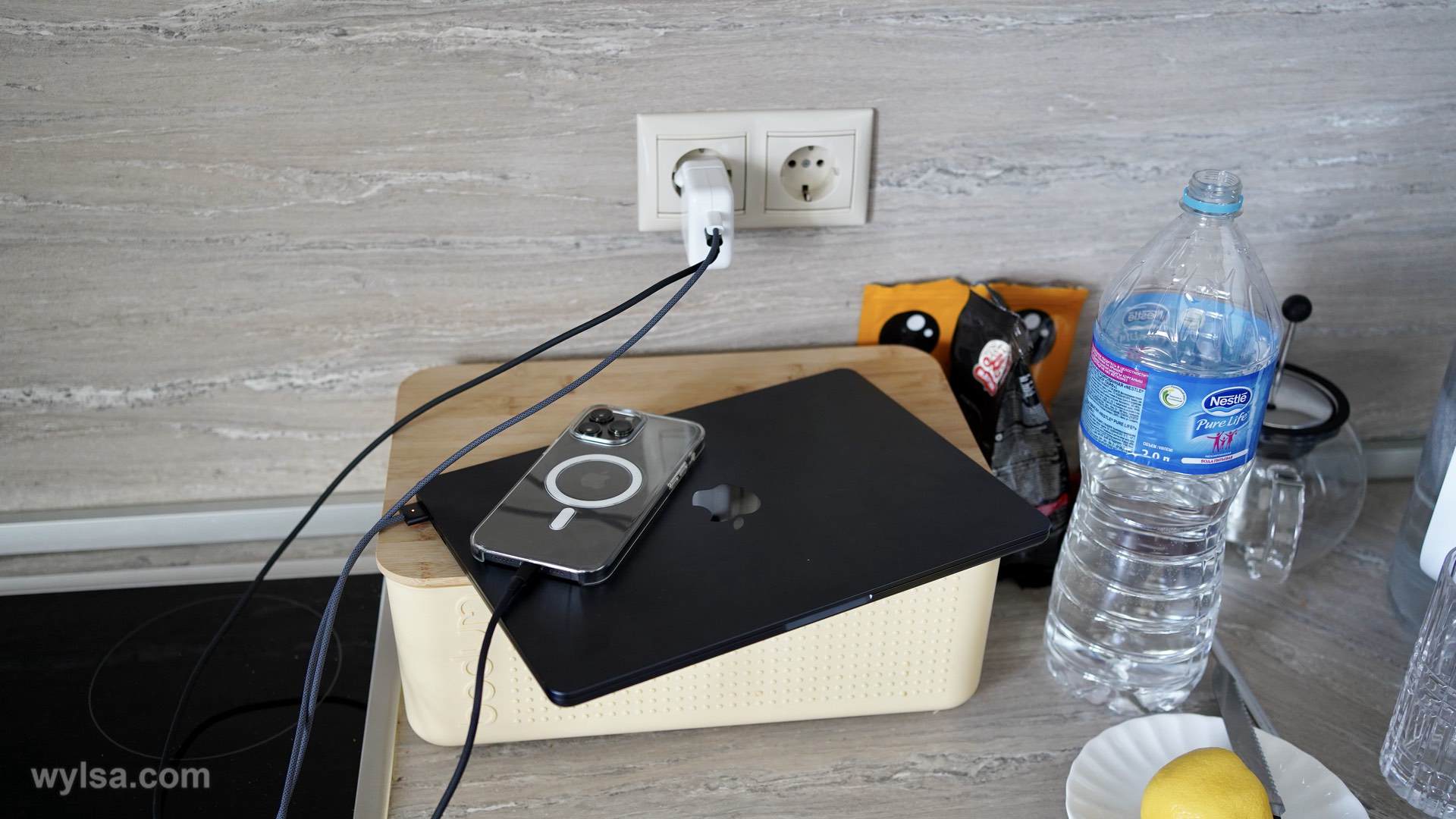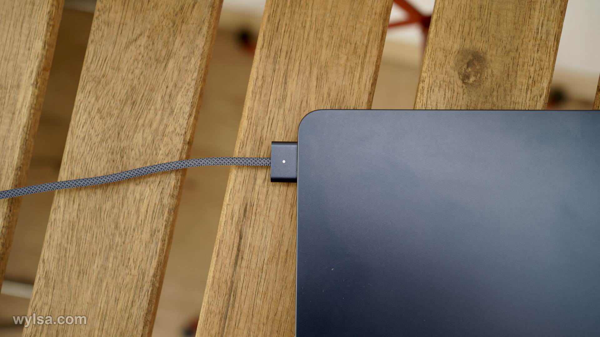Рядом с ними MagSafe — честно скажу, я никакой ностальгии по старым временам не испытываю и таскаю с собой обычный кабель USB-C, без магнита. Почему? Да потому что эту зарядку смогу подключить и к наушникам, и к iPad, и к дежурному смартфону с Android.