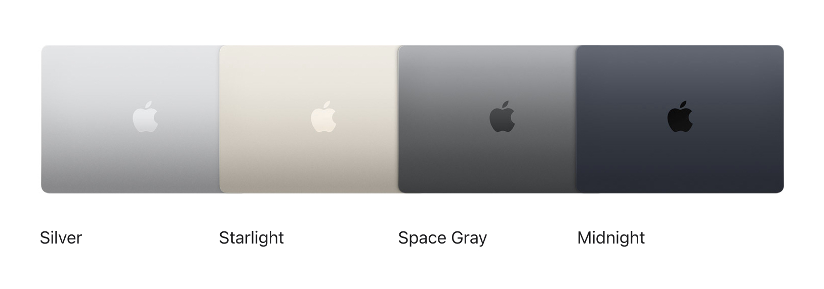 Существует четыре версии MacBook Air: серебристая, тёмно-серая, золотая (Starlight) и синяя.
