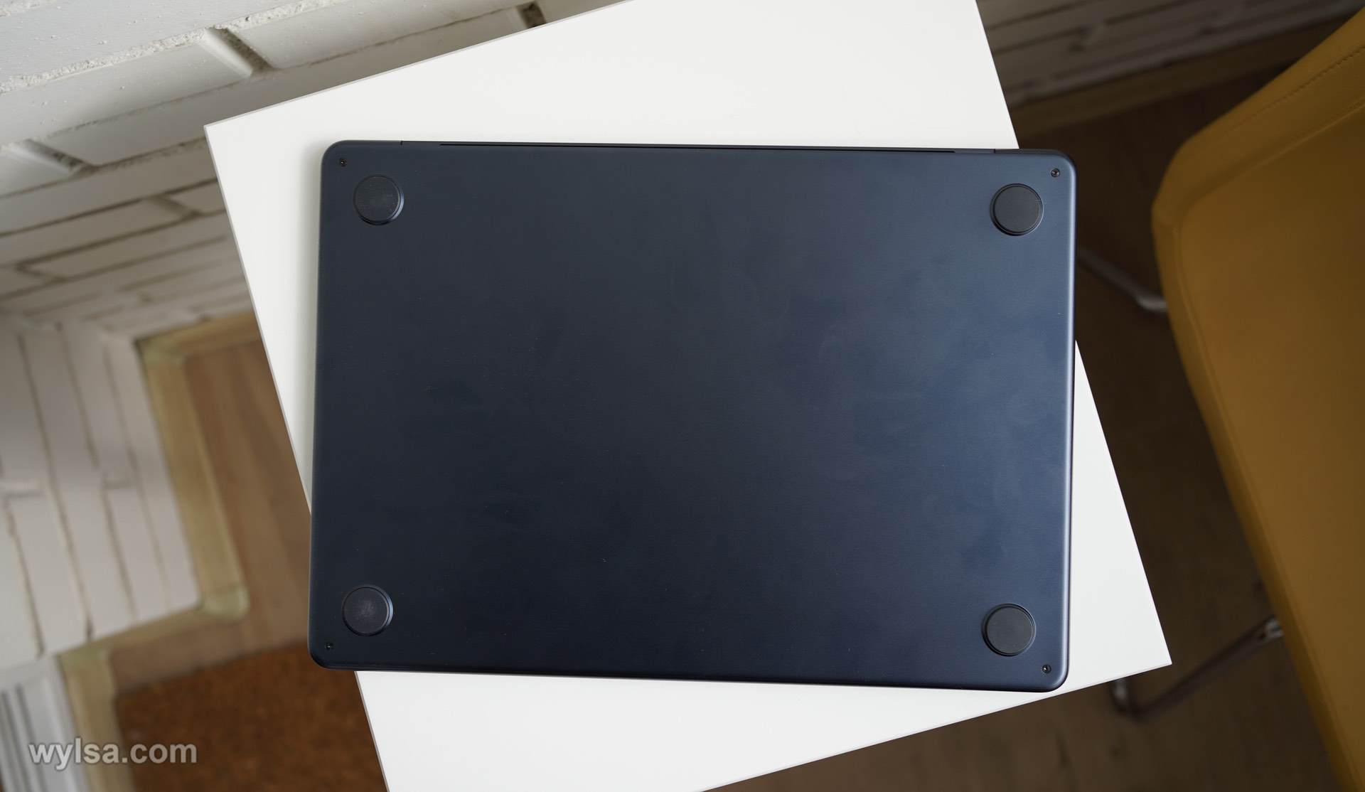 Неудивительно, что MacBook легко проходит тест на MacBook — одним пальцем очень легко поднять крышку. На нижней части корпуса здоровенные ножки из резины, ноутбук уверенно стоит на любой поверхности и никуда не дёргается.