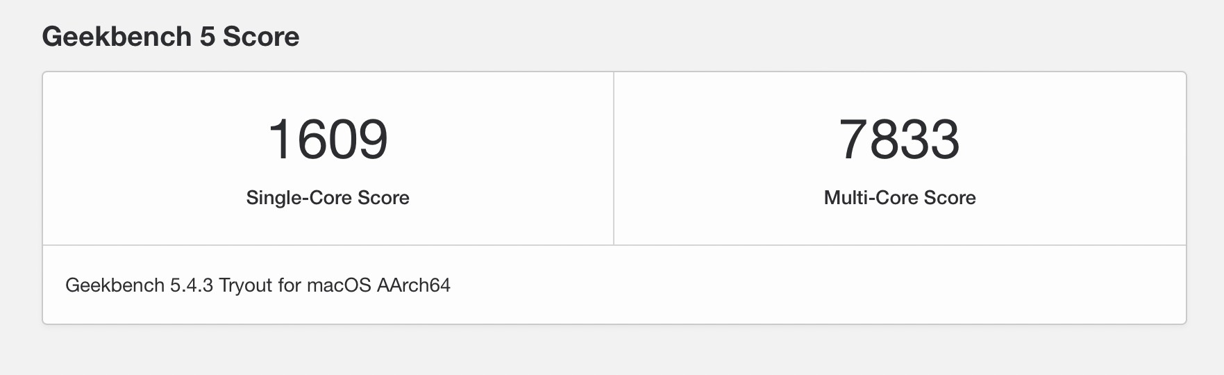 Как видите, новый MacBook Pro может похвастаться впечатляющими показателями производительности системы, несмотря на то, что он оснащен довольно новым и нестандартным процессором M1. В одноядерном тесте Geekbench 5 новый MacBook Pro набрал 1705 баллов, а MacBook Pro (2019) на базе Intel — 880 баллов. Преимущество MacBook Pro M1 в производительности в многоядерном тесте было еще более впечатляющим, поскольку новый ноутбук был на 97% быстрее своего предшественника. Эти результаты ясно показали нам, что новый MacBook Pro с процессором M1 является самым быстрым компьютером Mac на сегодняшний день.