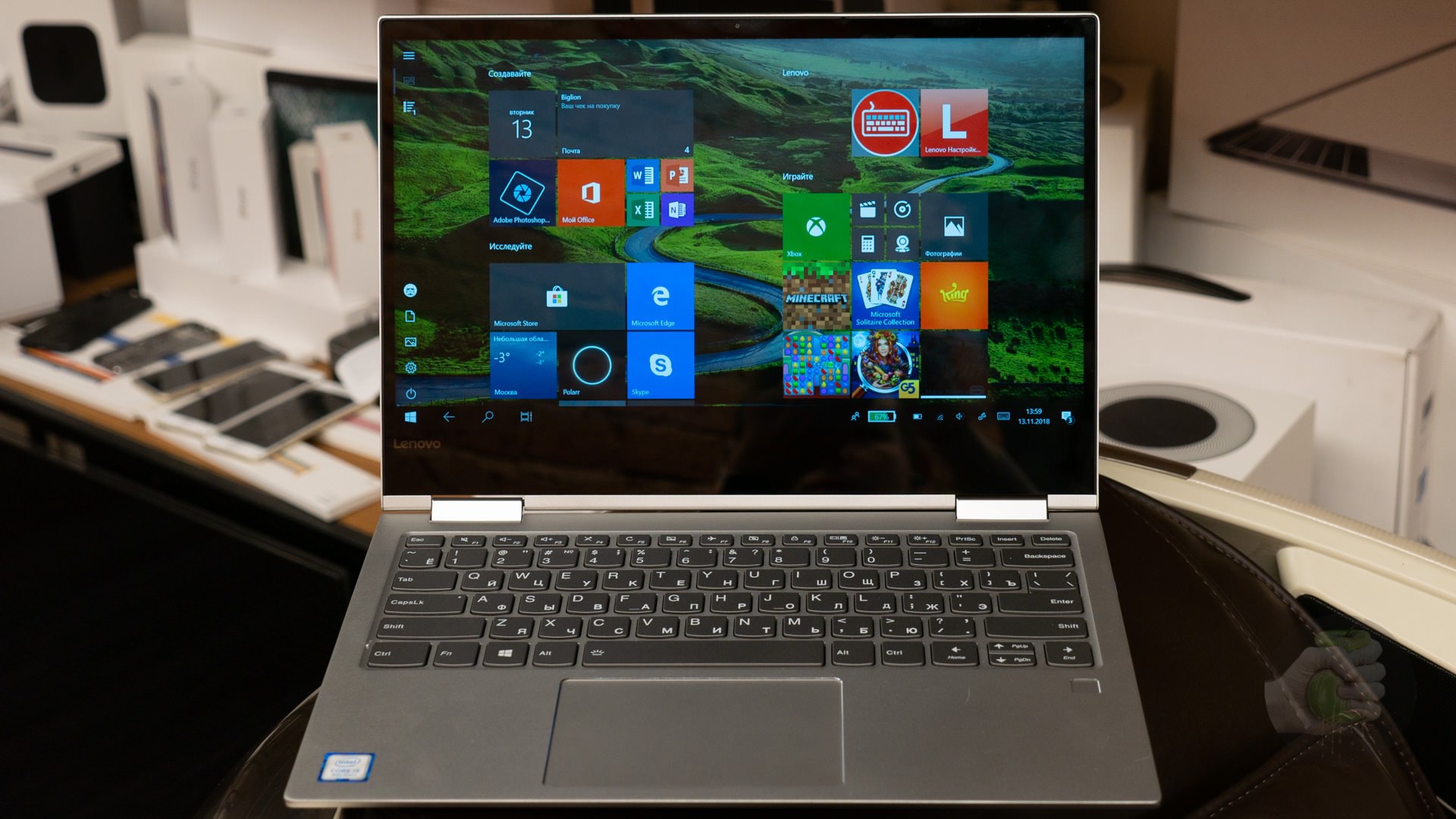Пожалуй, уже стало доброй традицией наделять каждый ноутбук линейки Yoga качественным экраном. В нашем случае имеем 13.3-дюймовый дисплей с довольно высоким разрешением 3200х1800 пикселей. Его глянцевая поверхность имеет дополнительную защиту в виде стекла Gorilla Glass. Матрица IPS обеспечивает хорошие углы обзора, независимо от ракурса.