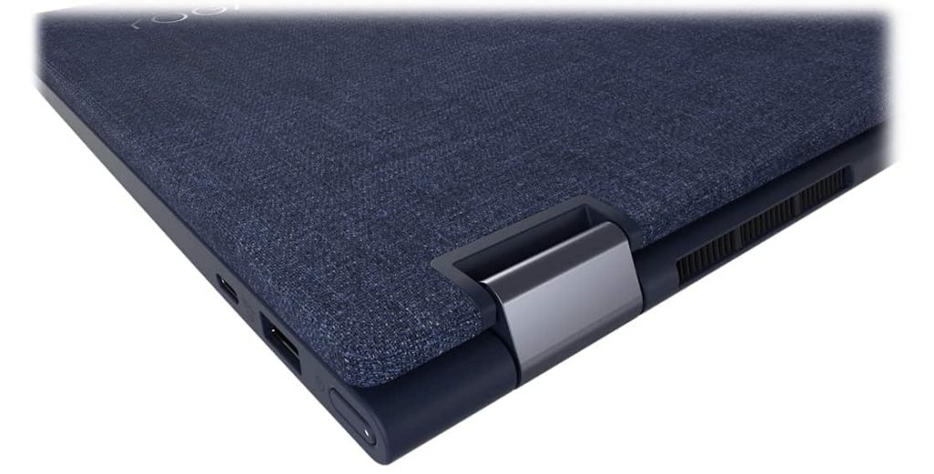 У Lenovo смелый новый подход к корпусу ноутбука, снабдив Yoga 6 тканевым чехлом цвета бездны, который выглядит и ощущается как джинсы. В верхнем углу ткани находится логотип «YOGA», а в противоположном нижнем углу — логотип «Lenovo» в глянцевом хромированном исполнении.