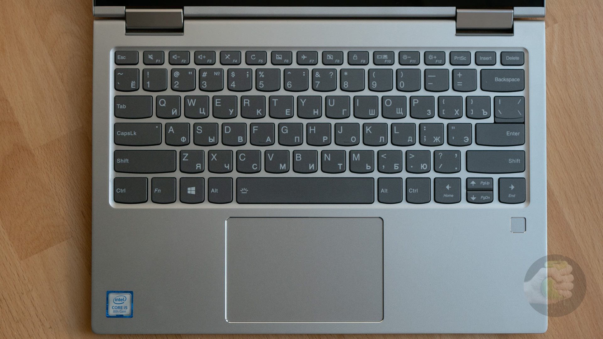 Толщина 12,8 мм наложила определённые ограничения на установку традиционной для линейки ультрабуков YOGA клавиатуры, поэтому в новой модели Lenovo пошла на ряд изменений. Во-первых, был уменьшен ход клавиш, первое время нажимать на них непривычно, но достаточно быстро привыкаешь. А во-вторых, переработана раскладка клавиатуры.