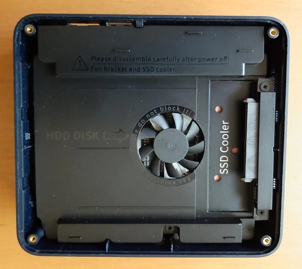 Сняв основание устройства, вы обнаружите пластиковый отсек, в который можно добавить 2,5-дюймовый диск SATA для увеличения объема памяти. Отсек включает еще одну новую функцию — небольшой вентилятор, который охлаждает не только диск, но и материнскую плату и память под ним: