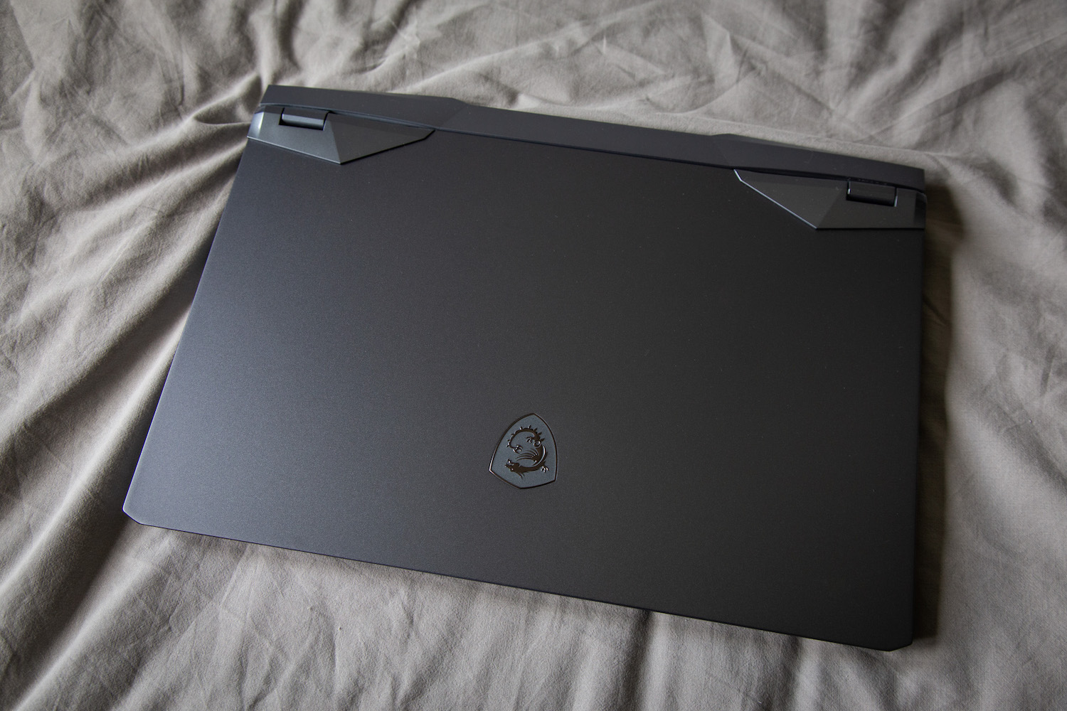 Первое, чем удивил меня этот монстр, — цветом. Голубоватая металлическая крышка, резкие линии в сочетании с изящными углами и привычной утонченностью бренда MSI. Мои дети назвали ноутбук красивым, чего не говорили обо всех ноутбуках, которые они видели. Как вы знаете, дети не умеют врать, верьте им на слово.