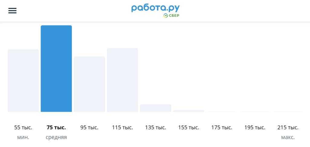 На портале hh.ru в начале апреля 1 343 вакансии, а на Авито 86 объявлений. Джуны могут получать от 65 тыс. рублей в месяц — такие вакансии есть на hh.ru. Средняя зарплата — 75 тыс. рублей по данным на портале Работа.ру.