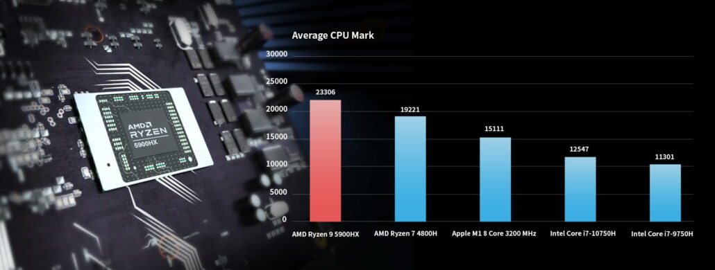 AMD Ryzen 9 5900HX из имеет 8 ядер и 16 потоков. Чип имеет 16 МБ кэш-памяти третьего уровня и 4 МБ кэш-памяти второго уровня. Базовая частота чипа составляет 3,30 ГГц, а тактовая частота в ускоренном режиме-4,70 ГГц. Другие особенности чипа включают улучшенный графический процессор Vega с 8 вычислительными блоками или 512 ядрами с тактовой частотой 2100 МГц, а также поддержку разгона, которая является первой для AMD в сегменте ноутбуков. Будет интересно посмотреть, какой разгон можно достичь с помощью Mini PC.
