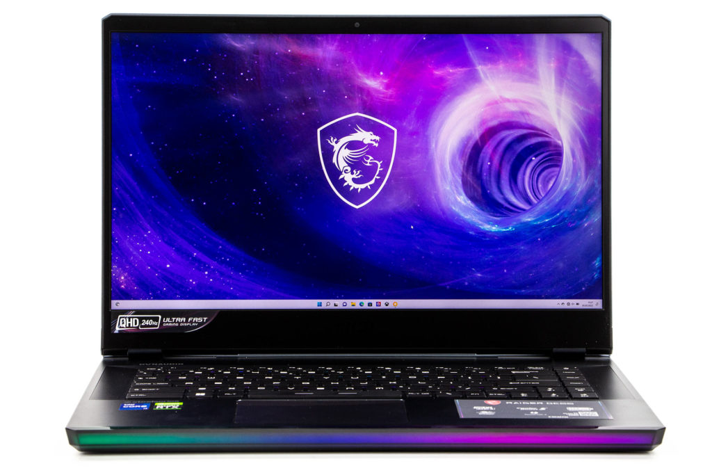 MSI Raider GE66 (и остальные из новой серии) имеет среди доступных опций IPS-панель с разрешением 2560×1440 Px с частотой обновления 240 Гц . Именно такой, в размере 15,6″, нашелся в тестируемой нами модели. Сразу можно сказать, что это золотая середина для игроков, при условии, что она подкреплена достаточно сильным оборудованием — как в Raider GE66.