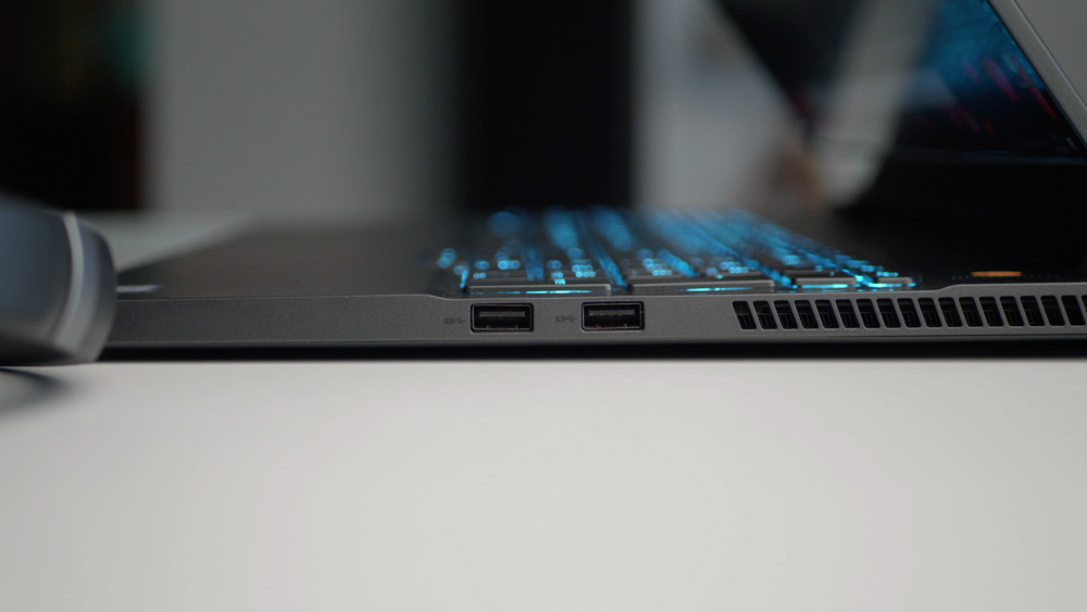Единственное, что нас расстроило здесь — всего два USB 3.0 порта формата USB-A. Они расположены на левом и правом боку — по одному порту на грань, но, нам кажется, для игрового устройства этого количества может не хватить. Особенно если вы захотите использовать ноутбук в десктопном режиме, подключая его к внешнему монитору. Тогда придётся подключать внешнюю мышку и клавиатуру, что как раз два порта и займёт. Ведь, если вы ПК-геймер, то наверняка предпочитаете именно проводные устройства ввода.