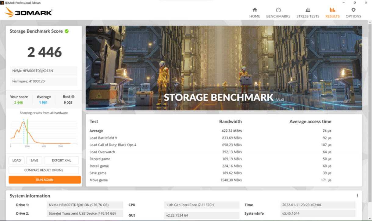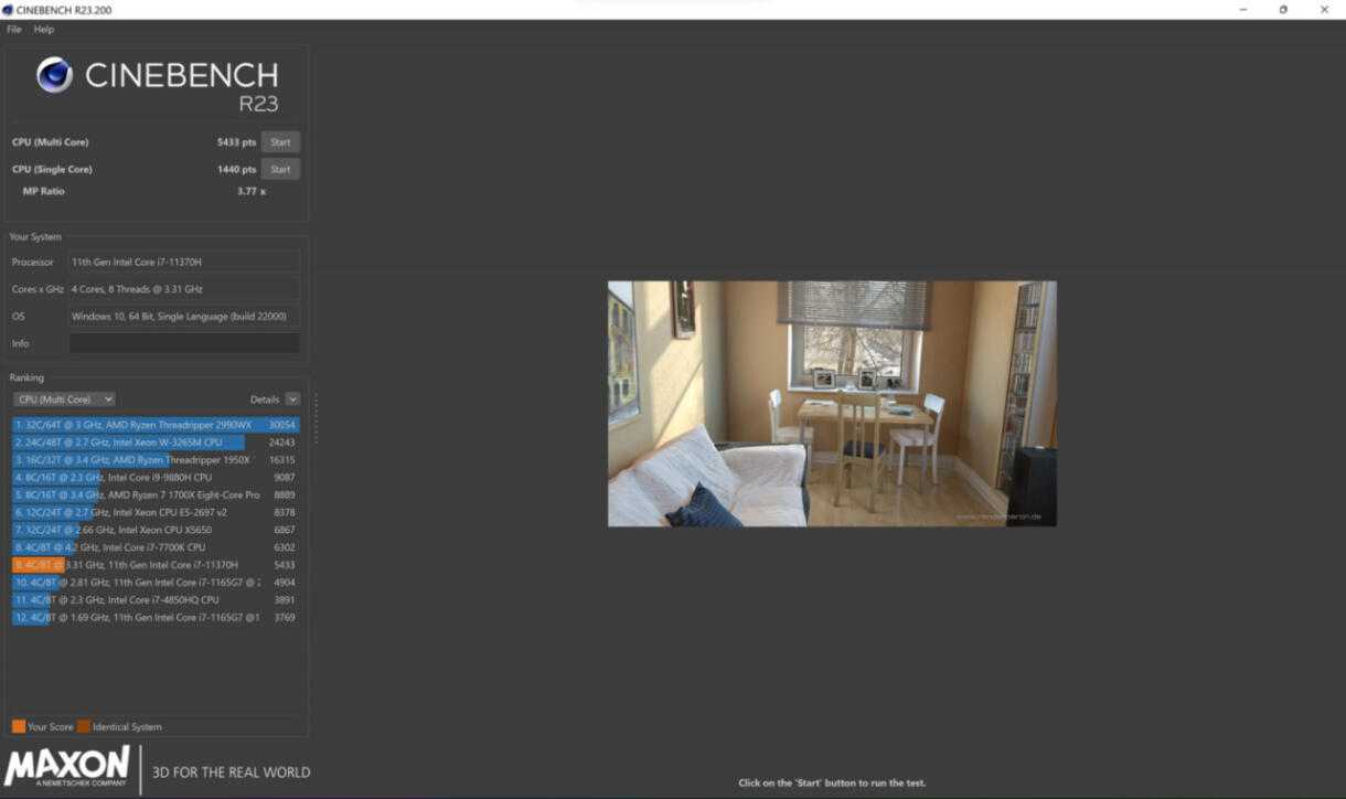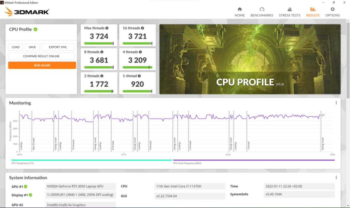 Intel Core i7-11370H демонстрирует высокое быстродействие в различных задачах, хотя и уступает существенно более производительному процессору, установленному в ProArt StudioBook 16 OLED (8-ядерный AMD Ryzen 9 5900HX, тепловой пакет 45+ Вт). M.2 NVMe SSD предлагает высокие показатели: скорость чтения 3500 МБ/с, записи — чуть больше 3000 МБ/с.