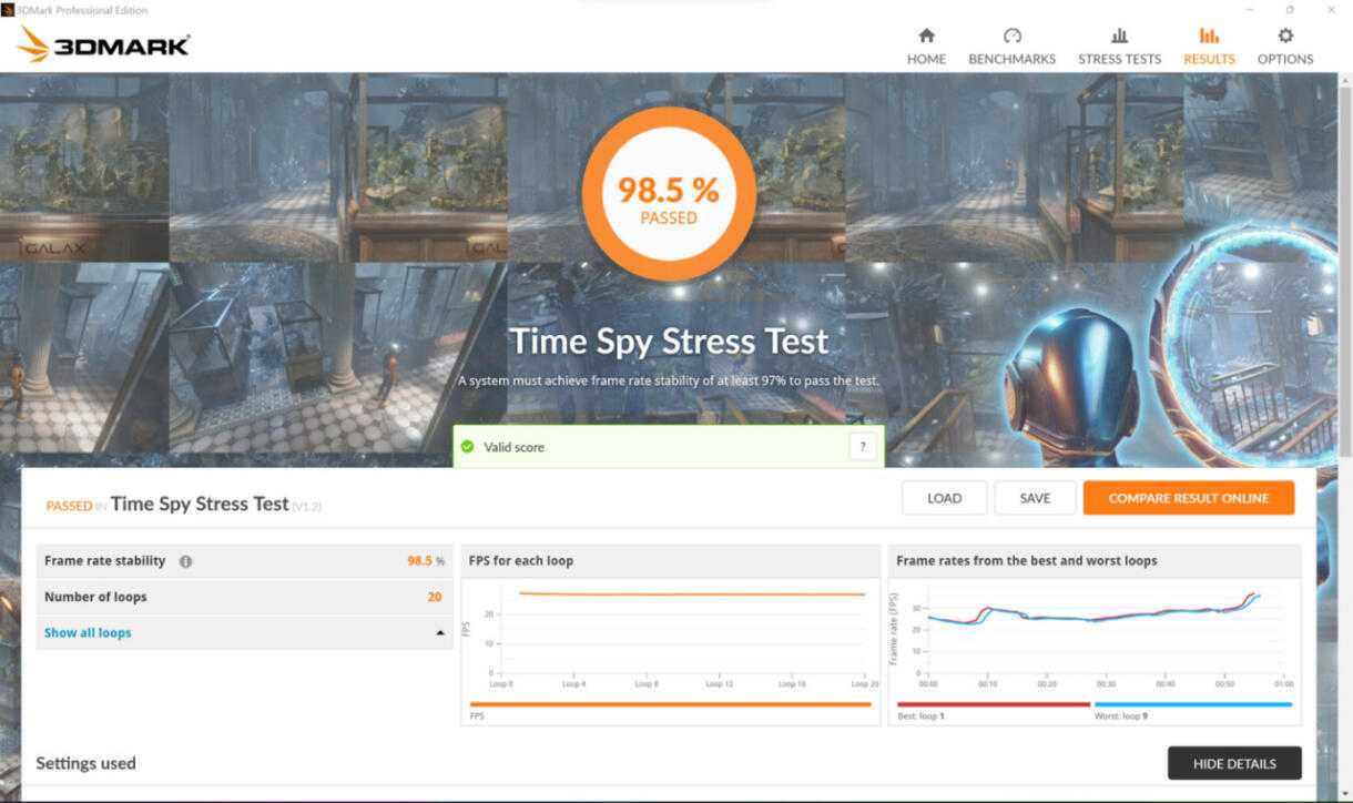 В тихом режиме устройство не всегда способно обеспечить плавность работы, из-за чего подходит скорее для просмотра видео и при необходимости сберечь заряд. Стандартный режим сочетает комфортное быстродействие с умеренным шумом вентиляторов. Производительный режим пусть и обеспечивает большую мощность, но уж слишком шумный. Подходит для рендера и требовательных игр (лучше в наушниках). Ниже представлены результаты бенчмарка 3DMark Time Spy в разных режимах производительности.