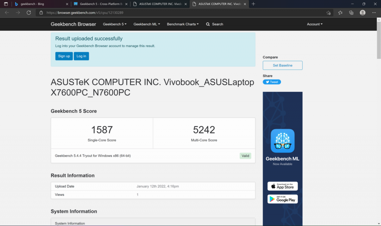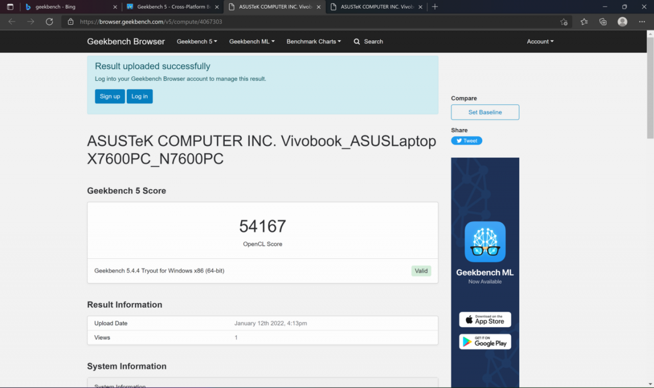 В наши руки попал семпл модели ASUS VivoBook 14 OLED с маркировкой M3401QC. Устройство имеет на борту процессор AMD Ryzen 9 5900HX, графические чипы AMD Radeon Graphics и GeForce RTX 3050 (35 Вт, Dynamic Boost 50 Вт), 16 ГБ оперативной памяти DDR4-3200 МГц (распаяна на плате, заменить нельзя) и 1 ТБ постоянной памяти M.2 PCIe SSD (можно заменить). Более подробные спецификации можно найти на скриншотах ниже. К сожалению, именно такую версию в России официально не купить, но если очень хочется, всегда можно заказать из-за рубежа.