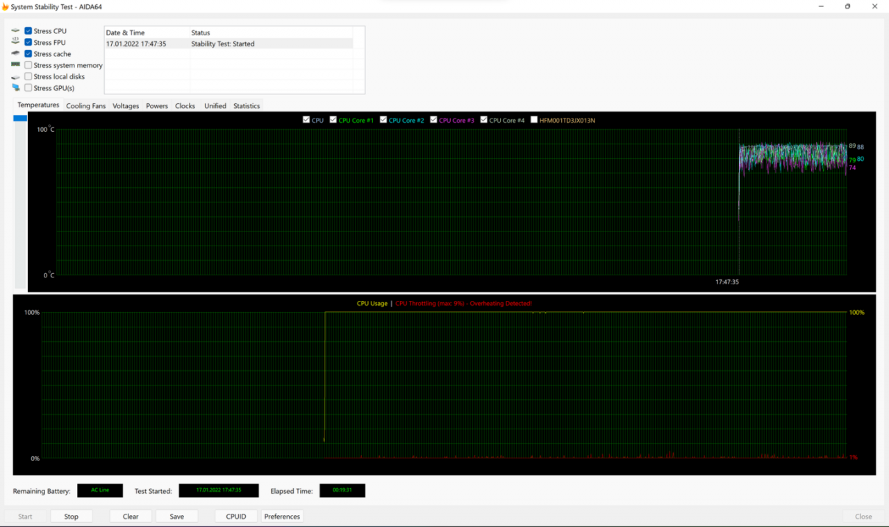 Если посмотреть на результаты в Cinebench R23, можно отметить, что во всех режимах производительность во время однопоточных задач оставалась неизменной, увеличивались показатели только в многопоточном режиме – и здесь не очень сильно. Также отметим, что во всех трех режимах во время стресс-теста стабильности системы в AIDA64 тротлинг формально не фиксировался — лишь совсем небольшой в «Стандартном» на первых минутах теста, когда система работала на несколько повышенных для этого режима частотах, около 4 ГГц.