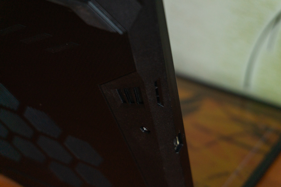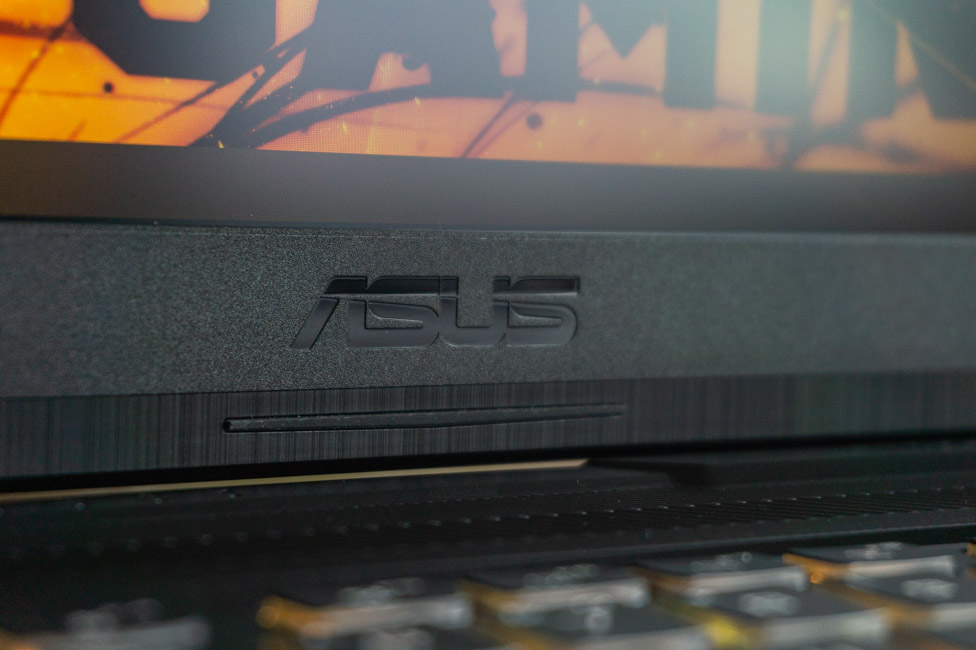 On the top of the lid is some TUF branding. Most machines opt for a small logo in the center, sometimes with LEDs. In this case, we get ‘TUF’ in huge letters spanning across half of the lid.