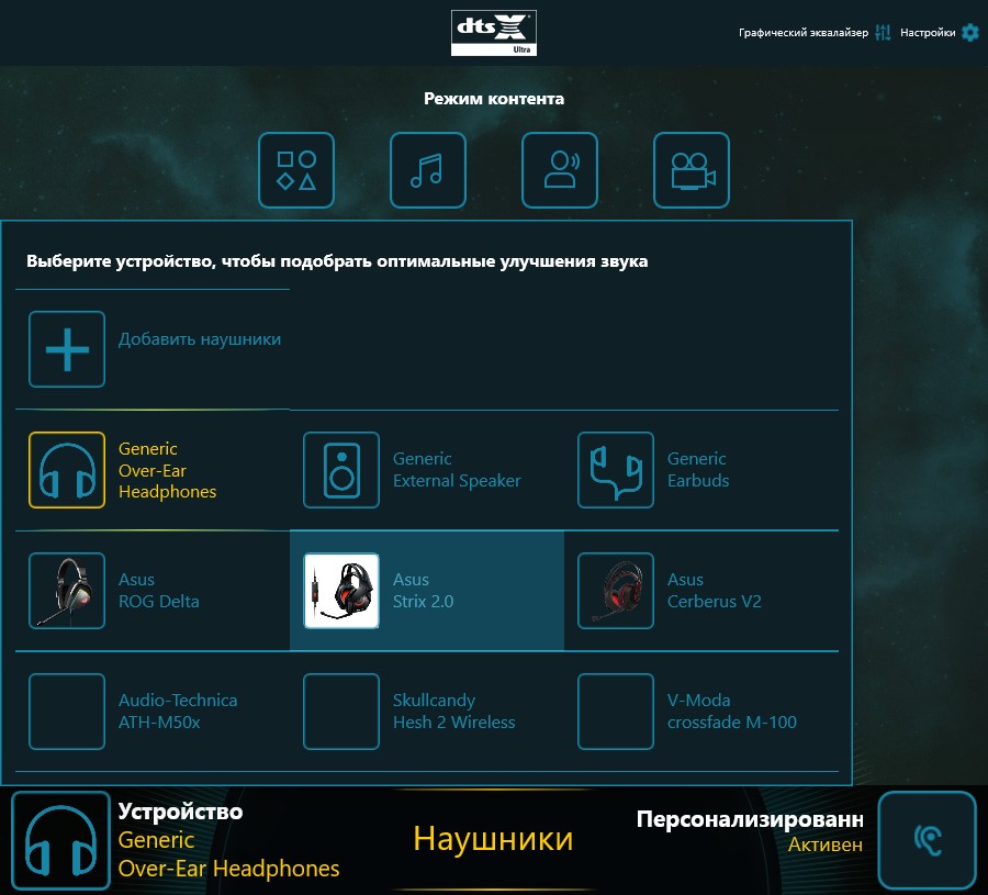 При подключении наушников возможностей в DTS:X Ultra становится ещё больше. Появляется возможность выбрать свои наушники из большущего списка, а также персонализировать звучание под свой слух. В целом к воспроизведению в наушниках вообще нет замечаний, всё круто.