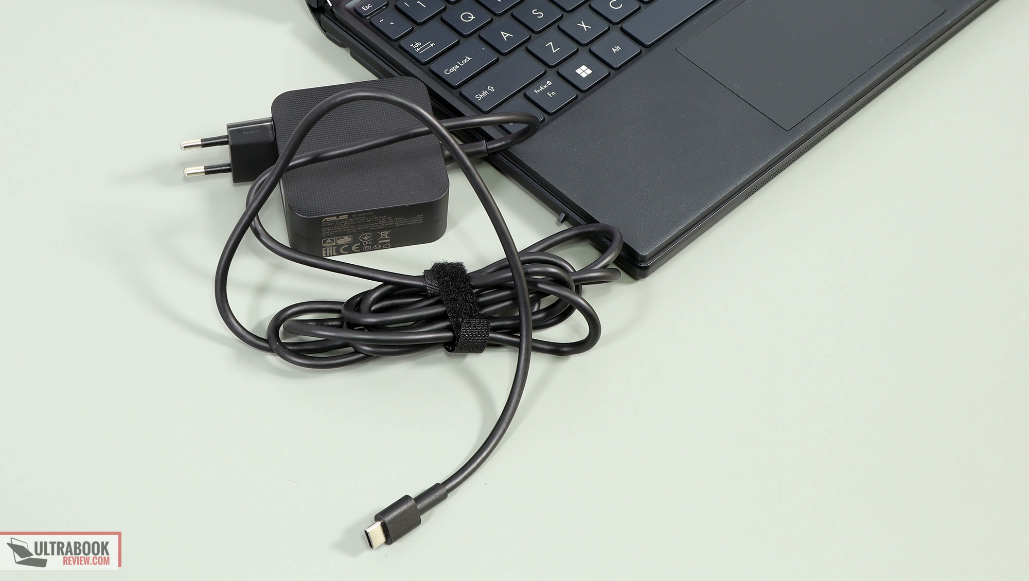 Zenbook Flip оснащается батареей емкостью 50 Вт•ч. К сожалению, тестовый ноутбук не позволил нам завершить тест батареи, выдавая ошибку. Но в реальном использовании, например, двухчасовой фильм будет отбирать около 20%, а час просмотра YouTube — около 15%. В итоге можно рассчитывать на 7-8 часов офисной работы. Зарядный блок для этой модели компактный и подключается через проприетарный разъем, зарядка через USB Type-C не поддерживается.