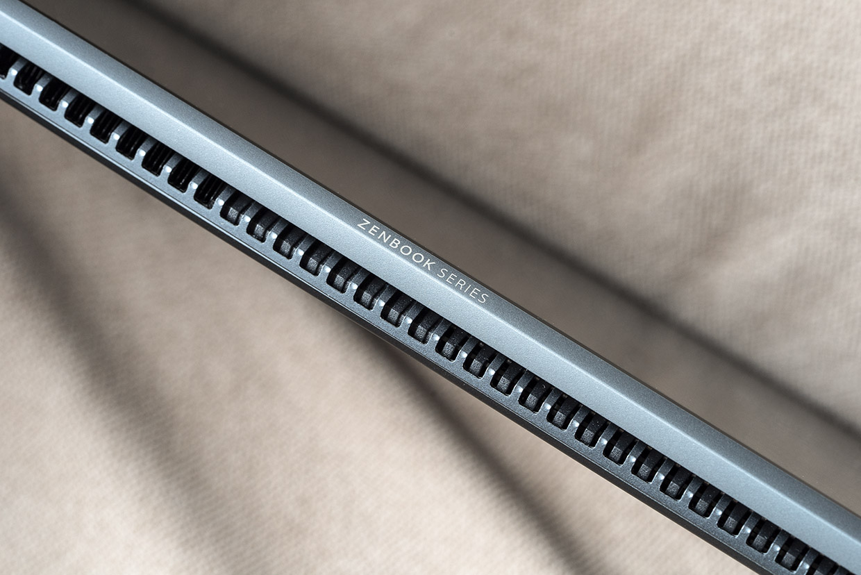 Корпус у Zenbook 14 OLED почти полностью алюминиевый – пластик можно увидеть лишь вокруг дисплея и в области шарнира.