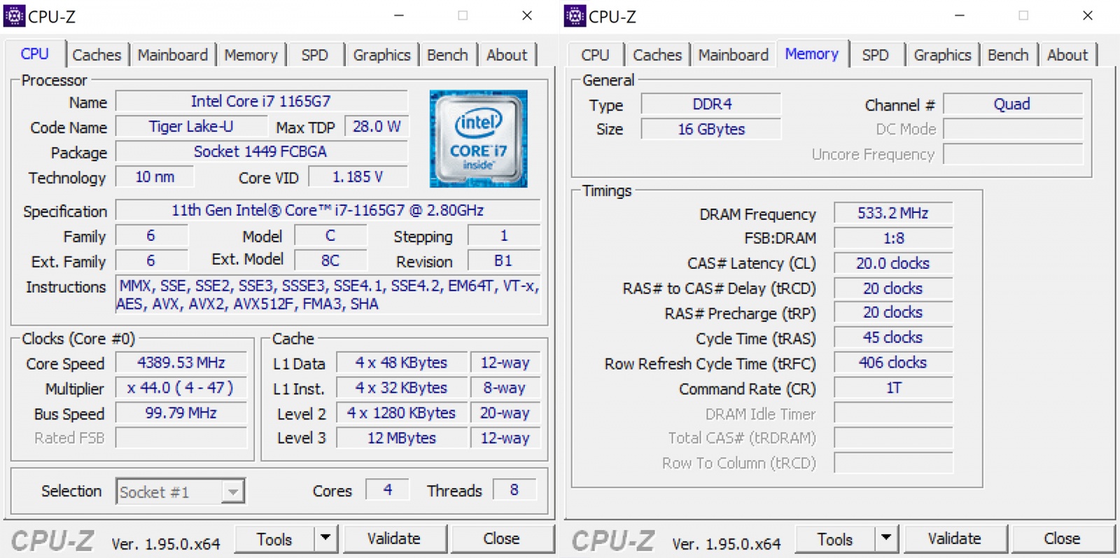 - Intel Core i7-1165G7 (4 ядра, 8 потоков, Iris Xe Graphics), частота до 4,7 ГГц, кэш 12 МБ