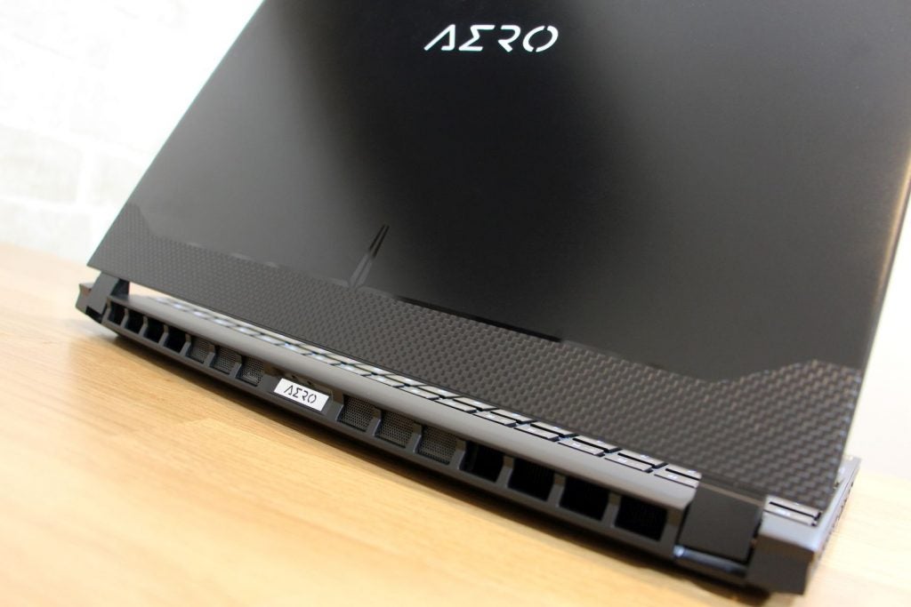 Gigabyte размером 0,78 на 14 на 9,8 дюйма и 4,4 фунта чуть больше и тяжелее, чем ZBook Create, но на полфунта легче, чем Razer Blade 15 Studio Edition. Его черный алюминиевый корпус украшен светящимся логотипом Aero на крышке. Есть небольшой прогиб, если вы держитесь за углы экрана, но его нет, если вы нажимаете на клавиатуру.