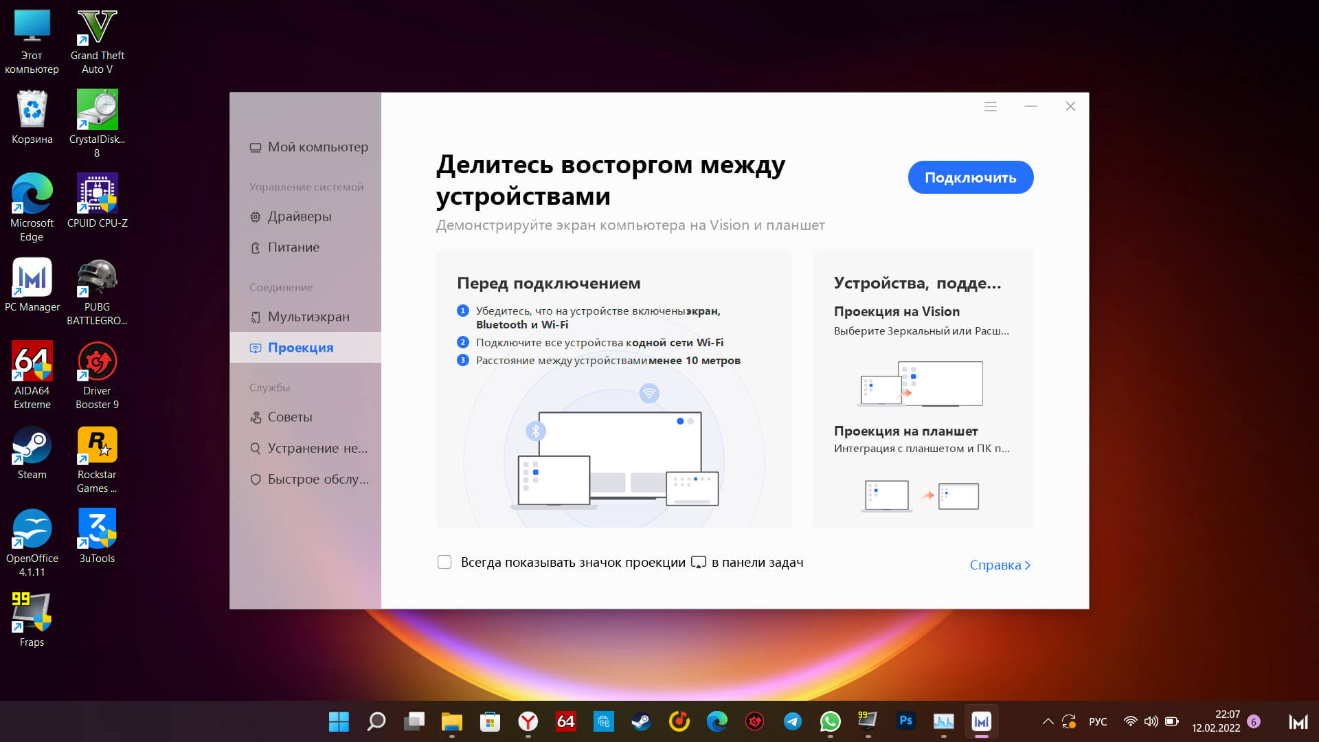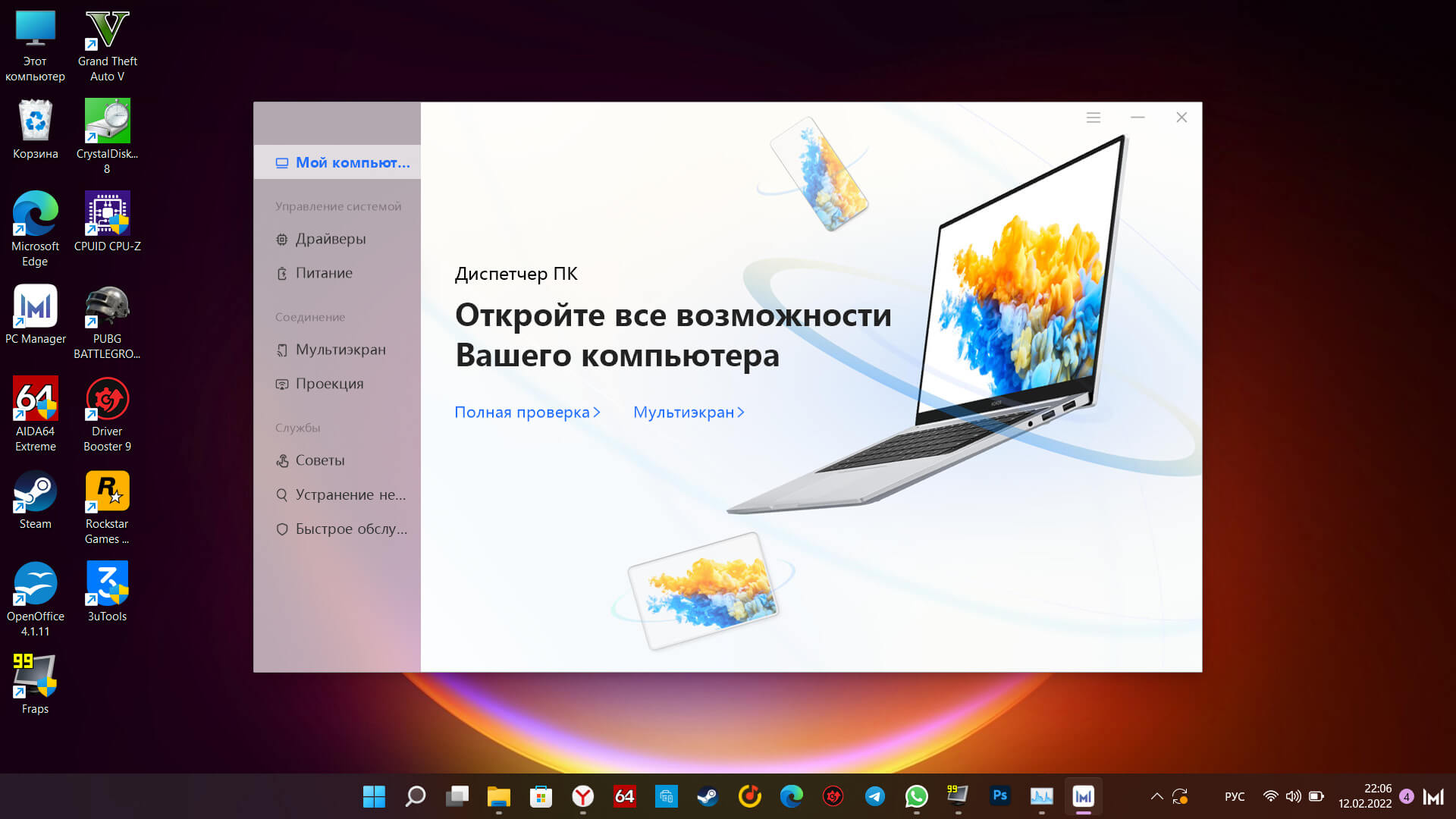 Разработчик установил собственную утилиту PC Manager для проверки общего состояния системы. Одним нажатием кнопки можно проверить оборудование на наличие проблем или обновить любой драйвер.