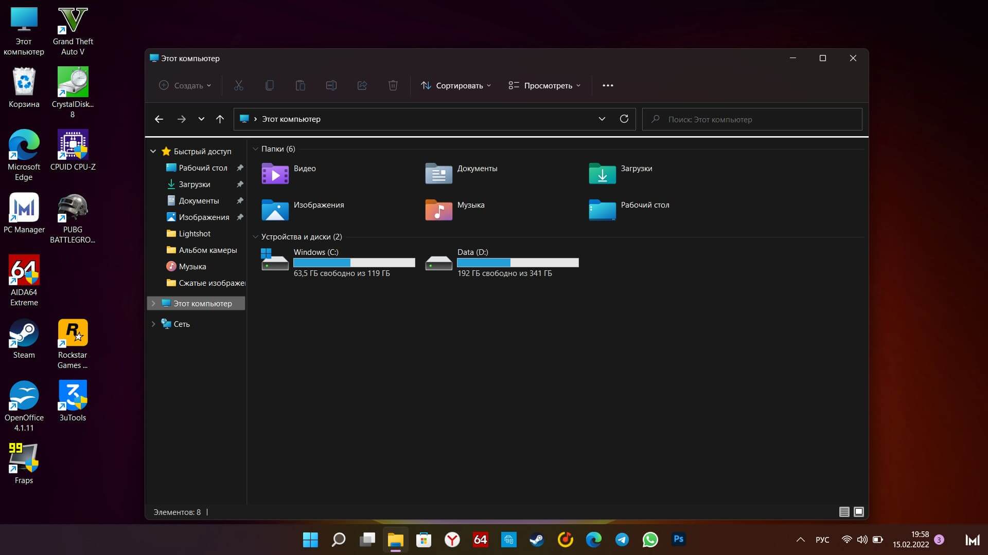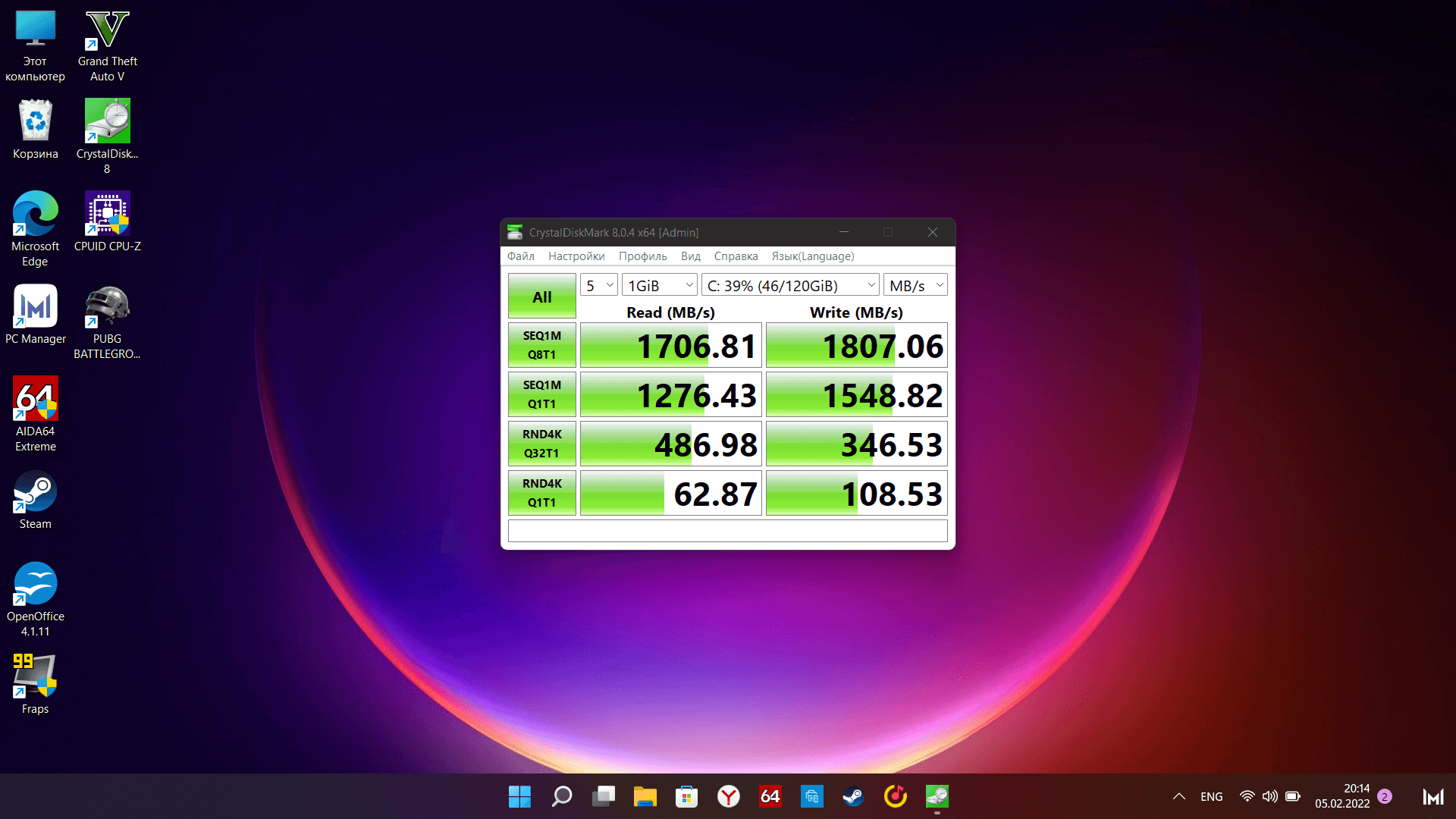 За хранение данных отвечает твердотельный накопитель SSD M.2 NVMe Samsung MZVL2512HCJQ-00B00 объёмом 512 ГБ. Диск разделён на два раздела: Windows (C) с операционной системной Windows 11 и Data (D) – на котором хранится рекавери. Он использует интерфейс PCI-E 4.0.4x, имеет типа памяти 3D TLC NAND. Максимальная скорость заявленного чтения 6.9 ГБит/с, а записи 6 ГБит/с. По факту CrystalDiskMark показывает лишь 1.7 ГБит/с на чтение и 1.8 ГБит/с на запись. Однако этот параметр достаточно высок, чтобы обеспечивать моментальную загрузку и переброс файлов. Энергопотребление составляет 0.005 Вт в режиме сна и 0.035 Вт в режиме работы. Данный накопитель был анонсирован в феврале прошлого года.
