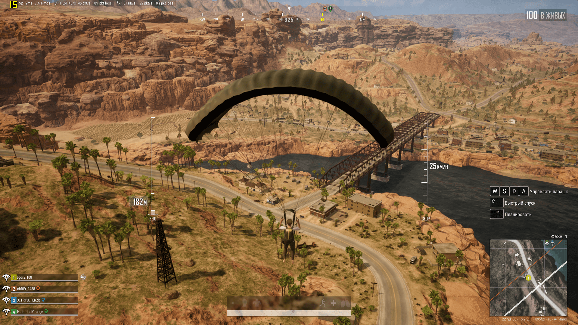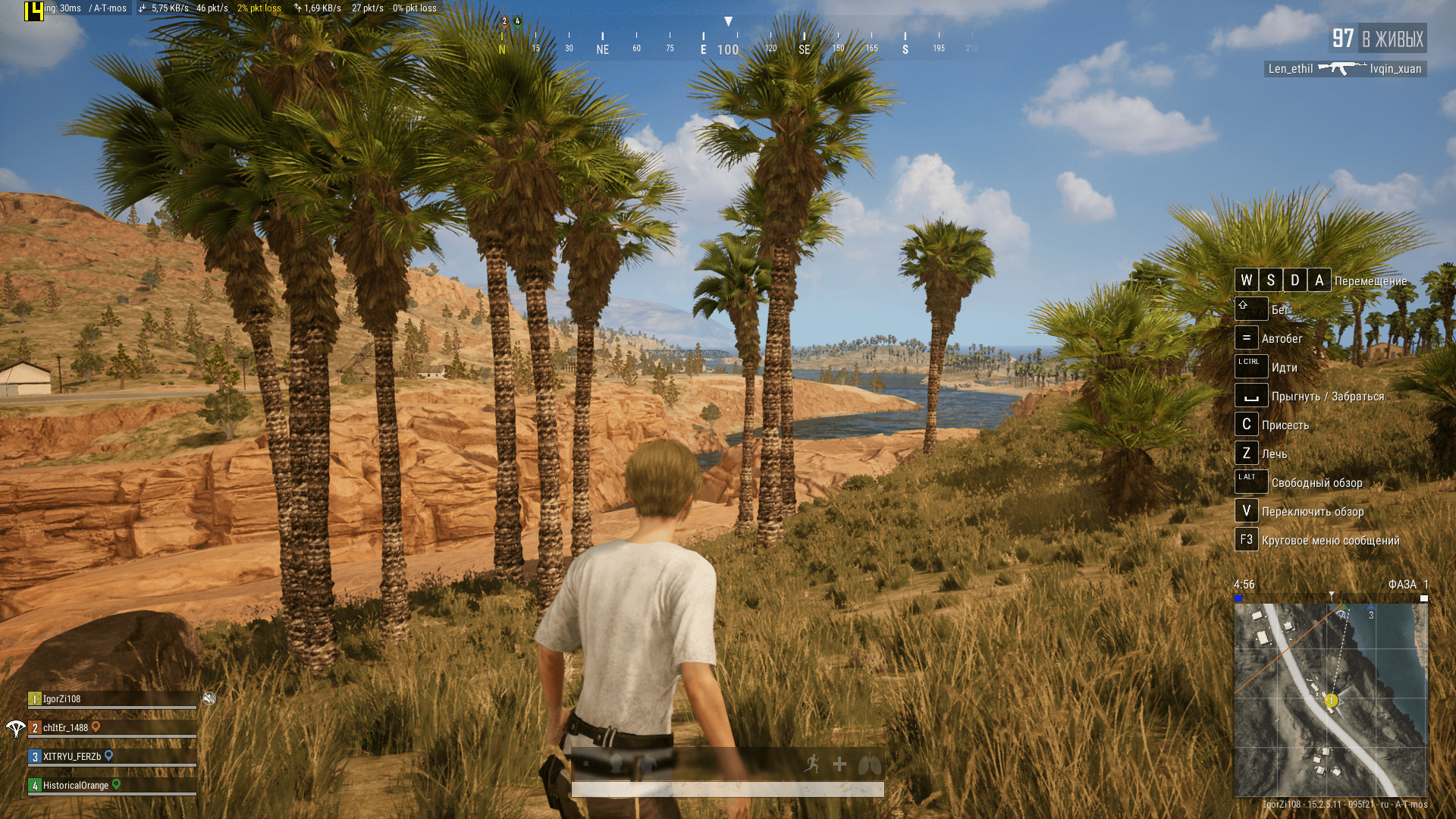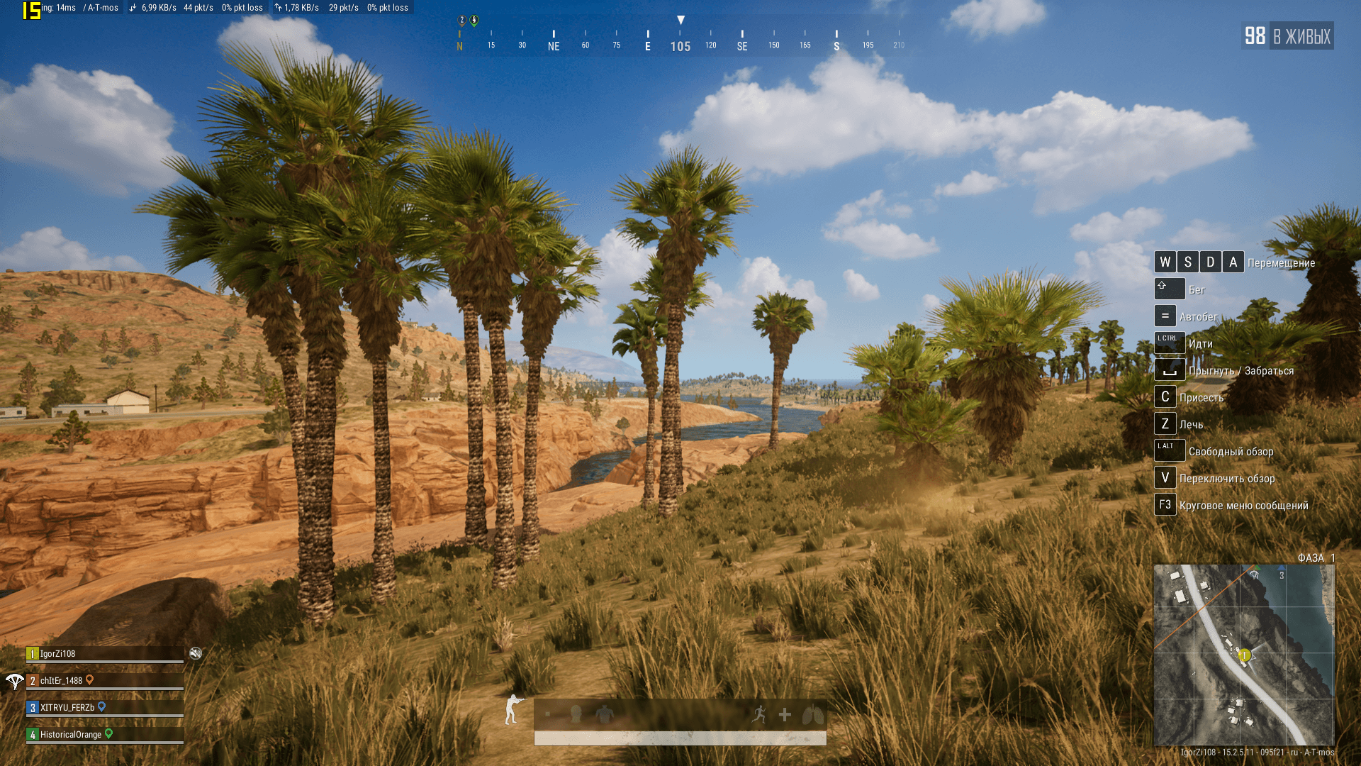 PUBG запускается очень быстро. Утилита для захвата частоты FRAPS колеблет частоту с 60 до 450 кадров в секунду. Но это происходит лишь в меню, до запуска программы. В настройках выставлен режим ультра. При начале запуска сессии открывается люк с рампой и графика моментально проседает до 14 кадров в секунду. При прыжке с грузового самолёта территория на дальних планах прорисовывается средне, иногда заметна сплошная гладкая поверхность вместо скал, а детали остаются нарисованными в проекции 2D. При прыжке и приближении с парашютом к земле детализация многократно возрастает даже на дальних планах – свою роль здесь играет локальная прорисовка, которая распространяется на доступное поле зрения. К слову, данные параметр можно настроить до начала игры. Взгляд от третьего и первого лиц на высоком уровне детализации, резкости, высокого диапазона HDR. Однако все эти указанные свойство позволяют выдать не более 15 кадров в секунду.