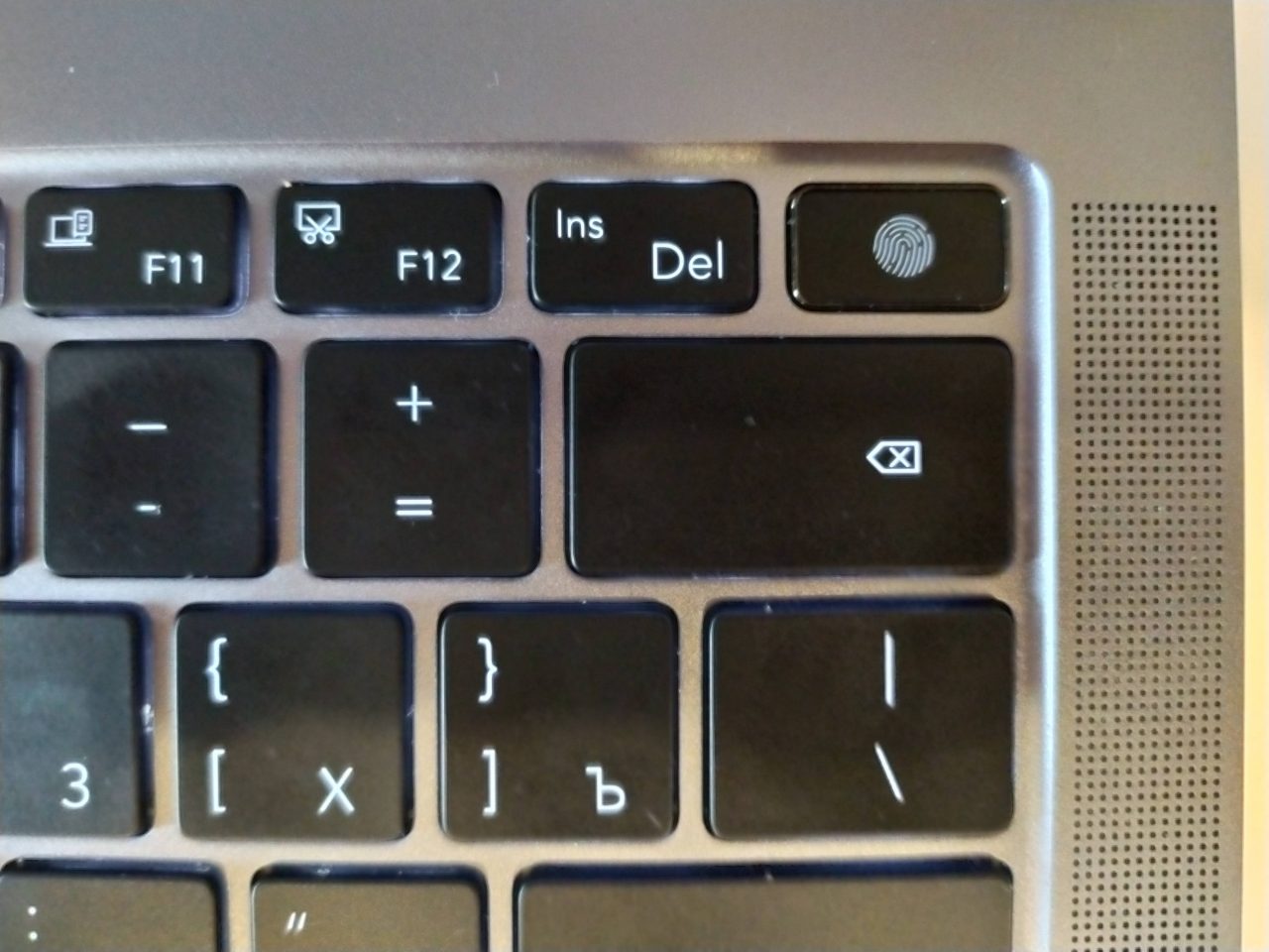 Датчик отпечатка пальца расположен прямо на кноке включения устройства. Не смотря на опасную близость кнопки питания к клавишам Delete и Backspace, у меня не было ни одного случайного нажатия, не смотря на то что печатал я много и печатал в слепую.