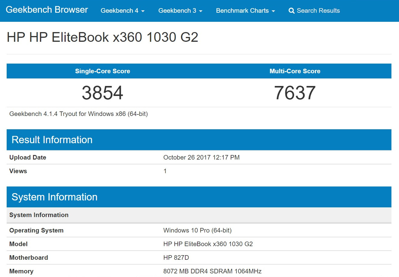 Разрыв в производительности между этими двумя модификациями HP стали заметны только в результатах теста Geekbench 4. Модель с 7820HQ достигла 13464 балла, значительно обогнав 8365 балла от ноутбука на чипсете 7500U. Модель с i7-7500U близка к среднему значению 8494 для категории тонких и легких ноутбуков.Для сравнения, Dell Latitude 7380 (процессор Core i7-7600U, 8 Гб оперативной памяти) показывает 8356 баллов.