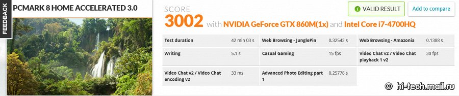 В целом же, ноутбук обладает всеми необходимыми характеристиками для мультимедийного ноутбука, включая наличие порта USB 3.0, переключателя между видеокартами на передней панели и, что немаловажно, приемлемым ценовым диапазоном. Еще одним преимуществом видеокарты GeForce GT 555M является поддержка 3D изображения, но поскольку дисплей не оснащен встроенным 3D-эмиттером, вам понадобится 3D монитор либо HD телевизор, подключенный к ноутбуку через HDMI кабель