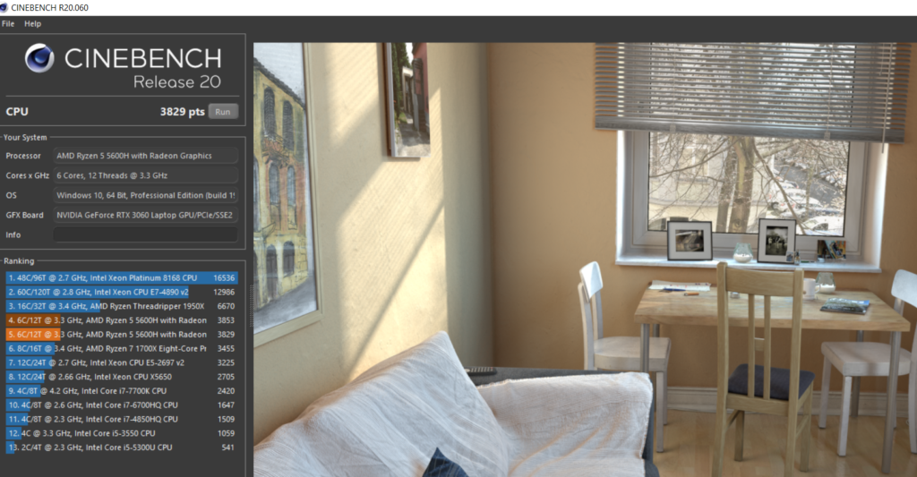 Давайте посмотрим на тесты в Blender Benchmark и Cinebench R20