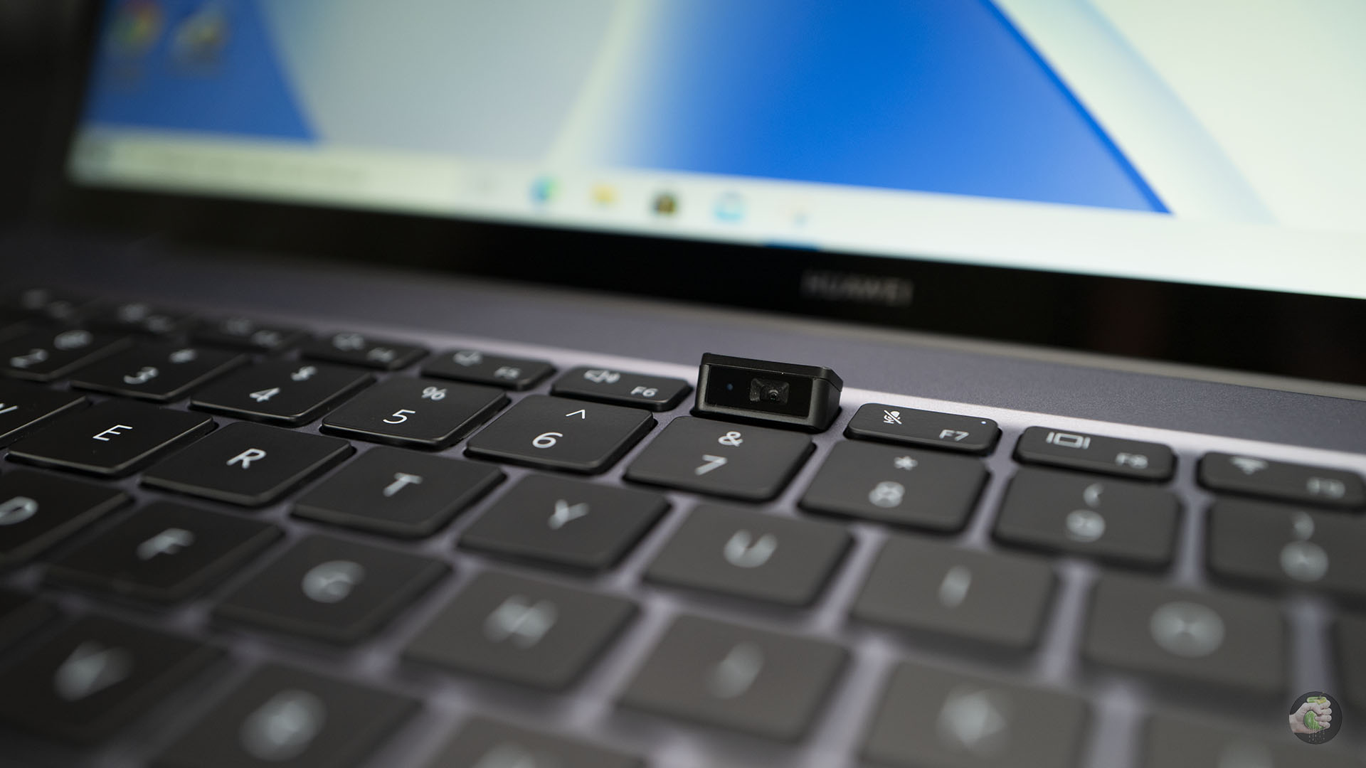 Huawei во всех ноутбуках делает максимально возможное соотношение дисплея и панели. Из-за этого камеру приходится перемещать в клавиатуру. Она спрятана между кнопками F6 и F7: