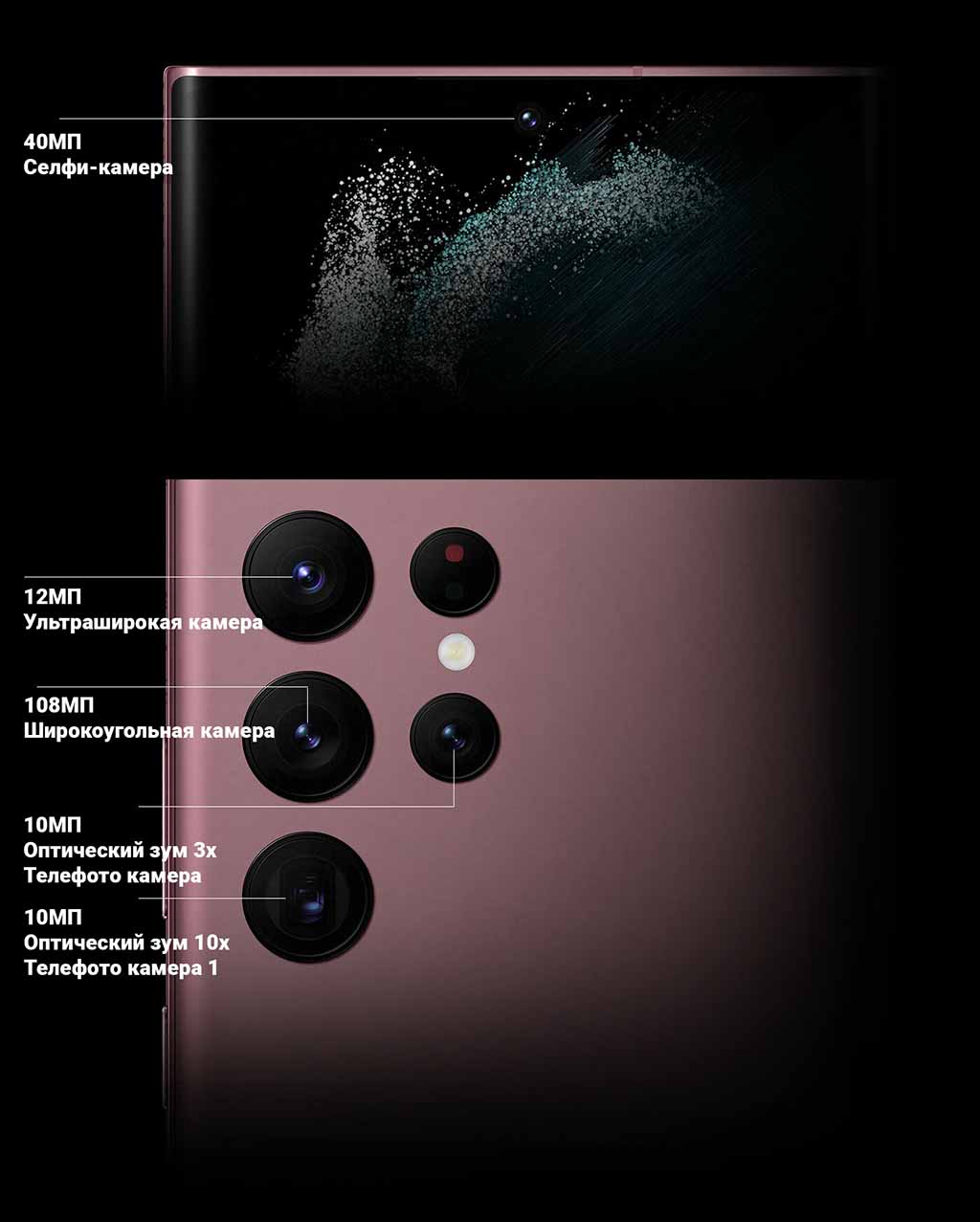 | Информация о камерах | Phase detection with Dual PixelObject tracking AFDual OISHDR10+ video recordingВторая камера — 12 MP (ultra-wide)Модель сенсора — Sony (вторая камера)Размер сенсора — 1/2.55″ (вторая камера)Размер пикселей — 1.4 μm (вторая камера)Диафрагма — f/2.2 (вторая камера)Угол обзора — 120° (вторая камера)Phase detection with Dual Pixel (вторая камера)Третья камера — 10 MP (телеобъектив)Модель сенсора — Sony (третья камера)Размер сенсора — 1/3.52″ (третья камера)Размер пикселей — 1.12 μm (третья камера)Диафрагма — f/4.9 (третья камера)Угол обзора — 11° (третья камера)Фокусное расстояние (в 35 мм эквиваленте) — 230 мм (третья камера)Phase detection with Dual Pixel (третья камера)Fourth rear camera — 10 MP (телеобъектив)Модель сенсора — Sony (#4)Размер сенсора — 1/3.52″ (#4)Размер пикселей — 1.12 μm (#4)Диафрагма — f/2.4 (#4)Угол обзора — 36° (#4)Phase detection with Dual Pixel (#4)Фокусное расстояние (в 35 мм эквиваленте) — 69 мм (третья камера) | 3.5x optical zoom100x digital zoomXD Fusion Pro Image EngineLeica cameraVario-Suммilux-H lensВторая камера — 40 MP (mono)Фокусное расстояние (в 35 мм эквиваленте) — 26 мм (вторая камера)Диафрагма — f/1.6 (вторая камера)Третья камера — 13 MP (широкоугольный объектив)Диафрагма — f/2.2 (третья камера)Fourth rear camera — 64 MP (periscope телеобъектив)Диафрагма — f/3.4 (#4)OIS (#4) |